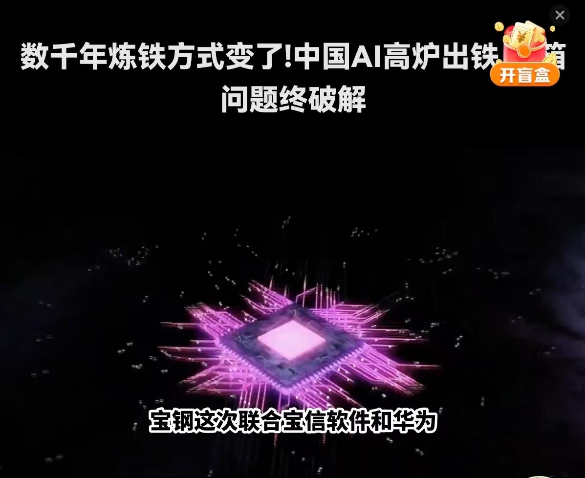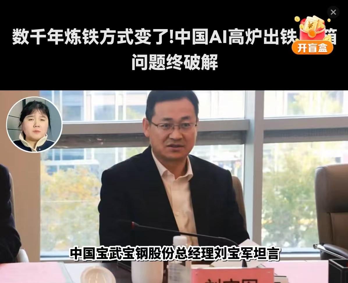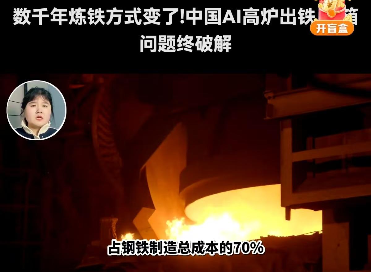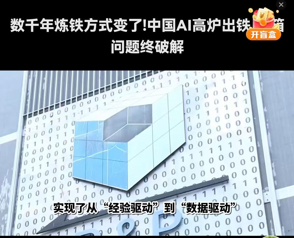 数千年炼铁方式彻底改变!中国宝钢AI高炉正式出铁。4月3日全球首发,AI替代人工经验,破解高炉“黑箱”难题,预测命中率超90%,实现降本、增效、低碳,开创钢铁行业智能化革命里程碑。 技术突破与实效 预测精度:核心AI模型对铁水温度、硅含量的2小时预测命中率超90%,实现全自动闭环控制。 合作开发:由宝钢股份联合宝信软件、华为共同研发,覆盖原料至炼铁全流程。 能效提升:燃料消耗持续下降,铁水质量稳定性显著提高,单座高炉年创效超千万元。 行业里程碑意义 全球首创:首次实现高炉炼铁全流程智能化,推动钢铁行业向绿色低碳转型。 战略落地:宝钢股份2024年启动的AI战略进入成果转化阶段,智慧高炉为标杆项目。 宝钢股份全球首发AI智慧高炉,破解炼铁“黑箱” 难题 昨天 宝钢智慧高炉项目以“数据+AI”双轮驱动,深度融合数十年炼铁工艺积淀与大模型、大数据、云计算等前沿技术,构建覆盖原料、烧结、炼焦、高炉炼铁全流程的感知-决策-执行闭环智能管控体系,实现从“经验驱动”到“数据驱动”、从“被动应对”到“主动预测”的根本转变,成功破解高炉“黑箱”调控难题。数据显示 上观新闻