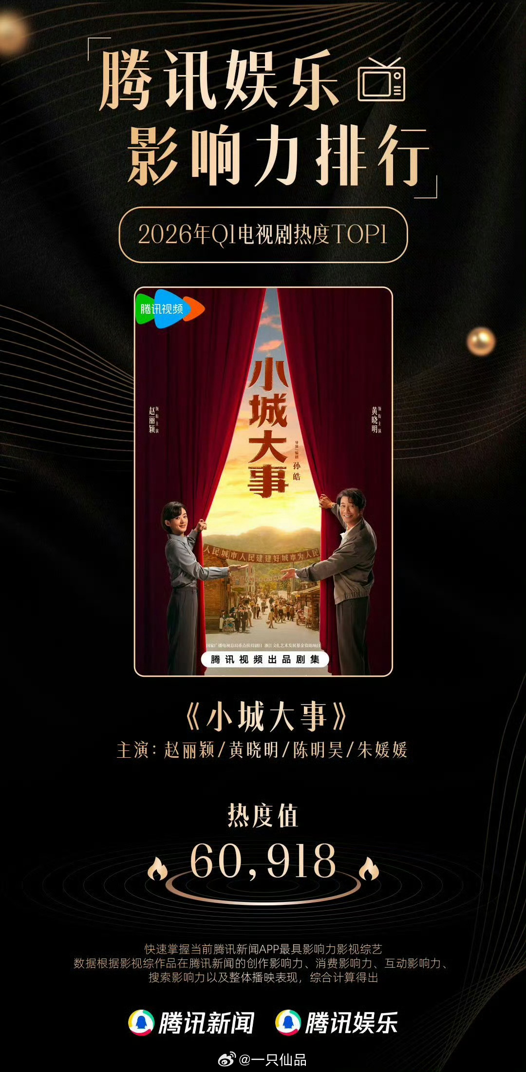 赵丽颖腾讯娱乐第一季度影响力双榜第一。