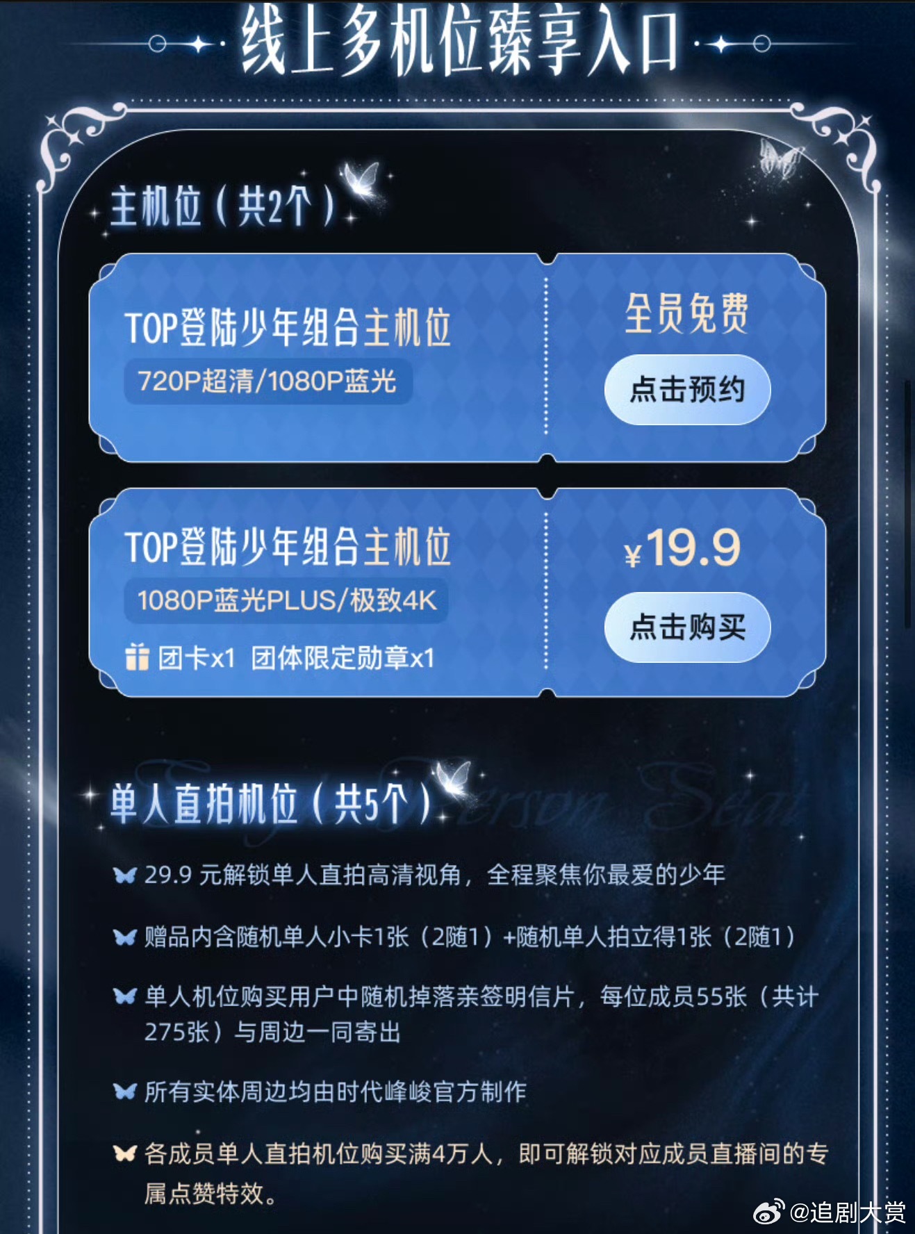 TOP澳门演唱会直播价格 TOP澳门演唱会直播价格:主机位免费,想要高清画质要给19.9,成员专属机位单个要29.9