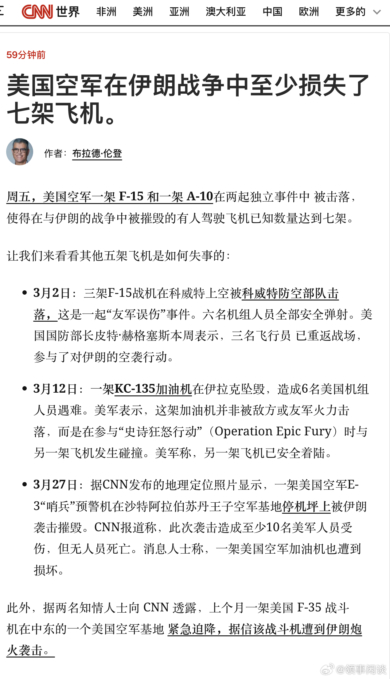 【美国空军在伊朗战争中至少损失了七架飞机】美军战机被伊朗击落美以入侵伊朗