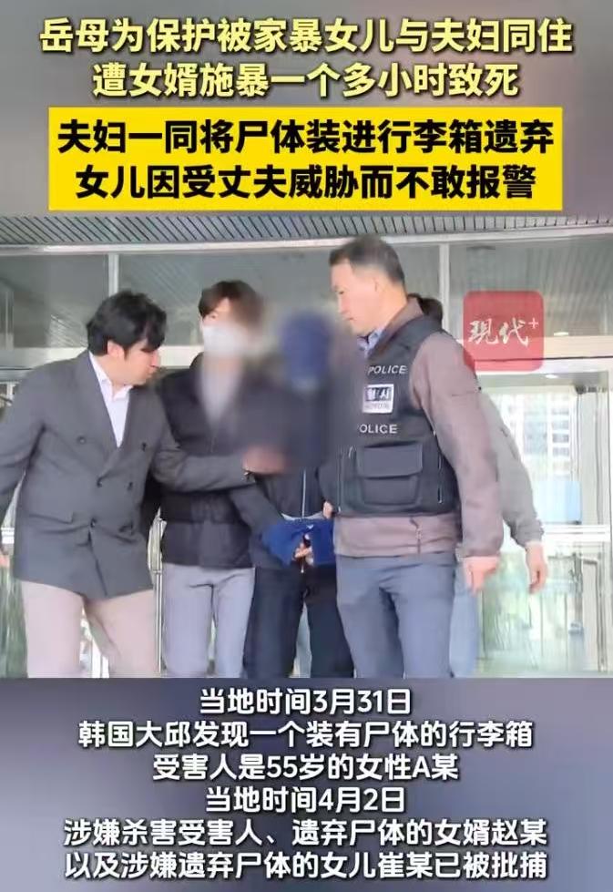 韩国大邱市的街头监控拍下过极其骇人的一幕。一对年轻男女拖着一个沉重的旅行箱,神色平静地穿过闹市区,一路走到新川河边将箱子丢弃。3月31日,七星洞七星桥下的这个行李箱被打开,里面是一具55岁女性的遗体。4月2日,韩国警方通报了这起案件的真相,杀人抛尸的凶手不是别人,正是死者的女婿赵某,而帮忙拖行李箱的,是死者的亲生女儿崔某。 这起案子里最让人不寒而栗的,是那份反常的冷静。一个人在长达一个多小时的时间里对岳母持续施暴致其死亡,处理现场、装箱、穿过人群抛尸,整个过程没有惊慌失措。这种毫无波澜的表现,印证了施暴者内心极度的冷血与控制欲。警方查明,赵某的暴力行为并非突发。自今年2月起,他就开始对岳母动手,在此期间更是长期虐待妻子崔某。他不仅实施身体上的伤害,还严密控制妻子,切断她与外界的联系,阻止其报警求救。 令人扼腕的是,55岁的岳母A某原本是来救女儿的。去年9月,察觉到女儿在婚姻中遭遇家暴,这位母亲果断搬进女儿家同住,试图用自己的存在震慑女婿,保护女儿的安全。母爱极其伟大,现实却极其残酷。她低估了一个长期家暴者的偏执与疯狂,非但没能拉女儿出火坑,自己反而成了被攻击的首要目标,最终惨死在女婿拳脚之下。 舆论场上最大的疑问,全都指向了那个帮着丈夫抛尸的女儿崔某。母亲被活活打死,她为什么不反抗?为什么还能冷静地帮忙处理遗体?很多人用“冷血”来形容她,案件细节背后呈现的,恰恰是一个长期处于家暴极度恐惧下的女性,心理防线被彻底摧毁的过程。从2月到3月18日事发,在密闭的家庭空间里,面对暴力的丈夫和被殴打的母亲,崔某经历了什么样的精神折磨外人无从得知。长期的恐惧会让人丧失正常的判断力,斯德哥尔摩综合征式的心理臣服,让她在极端暴力发生后,大脑出于自我保护机制选择了麻木与顺从。她协助抛尸,很大程度上已经沦为施暴者精神控制的延伸工具。 这起悲剧撕开了一个沉重的社会议题。家庭暴力从来不是家务事,而是一种极具隐蔽性的犯罪升级。这位母亲的遭遇证明了一个残酷的现实:面对已经显现暴力倾向的人,单纯地靠家人 physically 同住去“挡拳头”,风险极其巨大。施暴者的暴力一旦不受制约,往往会因为被阻拦而变得更加狂躁,护女的母亲反而容易成为新的发泄靶子。 摆脱家暴困境,靠个体的勇气往往不够,需要的是系统性的干预。在暴力初现端倪的2月份,如果周围有及时的干预机制,如果求助渠道能真正保护受害者不被报复,悲剧或许就能阻断。对于深陷家暴泥潭的人而言,最安全的做法不是正面硬刚,而是寻找专业的庇护机构,保留证据,通过法律和公权力强制拉开与施暴者的距离。大邱新川河边的这个行李箱,装下的不只是一具遗体,更是家庭暴力酿成惨剧后的血淋淋的警示。面对家暴,别试图用肉身去唤醒良知,那往往只会换来无法挽回的代价。 以上内容仅供参考和借鉴