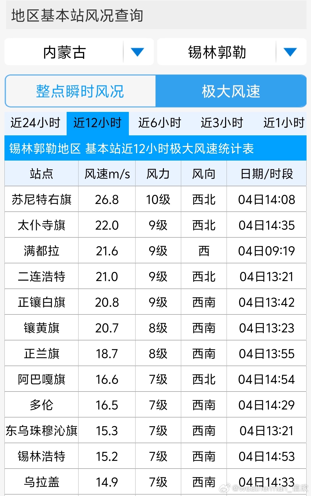 【大风】今天白天在内蒙古中部、山西北部、河北北部等地阵风达到了8级以上,而且是清晨风不大,中午-下午明显加大,体现了高空动量下传的作用。内蒙古苏尼特右旗、察哈尔右翼前旗、朱日和阵风达到了10级。此外内蒙古包头、山西平鲁、宁武、河北康保阵风达到了9级。未来2天北方还会有动量下传的大风。