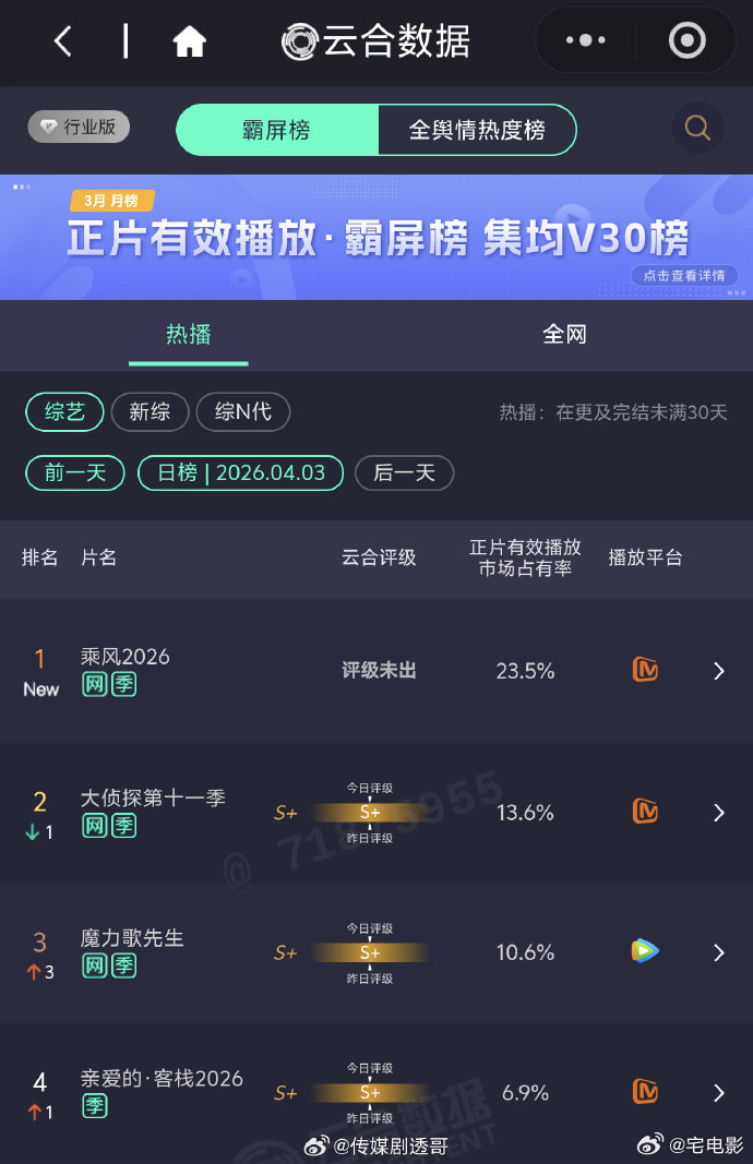 乘风2026第一没想到直播形式还能有这么高的播放量,首日就拿下第一,浪姐这号召力真不是盖的乘风2026