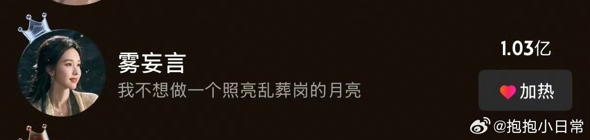 陈都灵雾妄言角色热度破亿陈都灵的转型太成功了!雾妄言这个角色有血有肉,亦正亦邪的设定超有魅力,白发造型更是封神。开播四天热度破亿,无后援会+路人粉助力,23000+云包场,这实绩太能打。