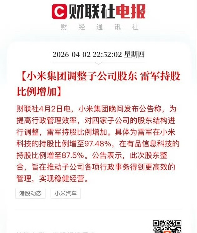 雷军小米科技持股增至97.48%有眼光的投资客对小米都是非常有信心的,建议只想短期赚快钱的人 目前先不用考虑小米。小米的财报那么稳定,各项发展是蒸蒸日上的,尤其是整个 AI 科技领域的成就,全部都占到了全球顶级梯队,说不定在未来某个时间点会经历一场爆火 从而使股票大幅拉升也说不定
