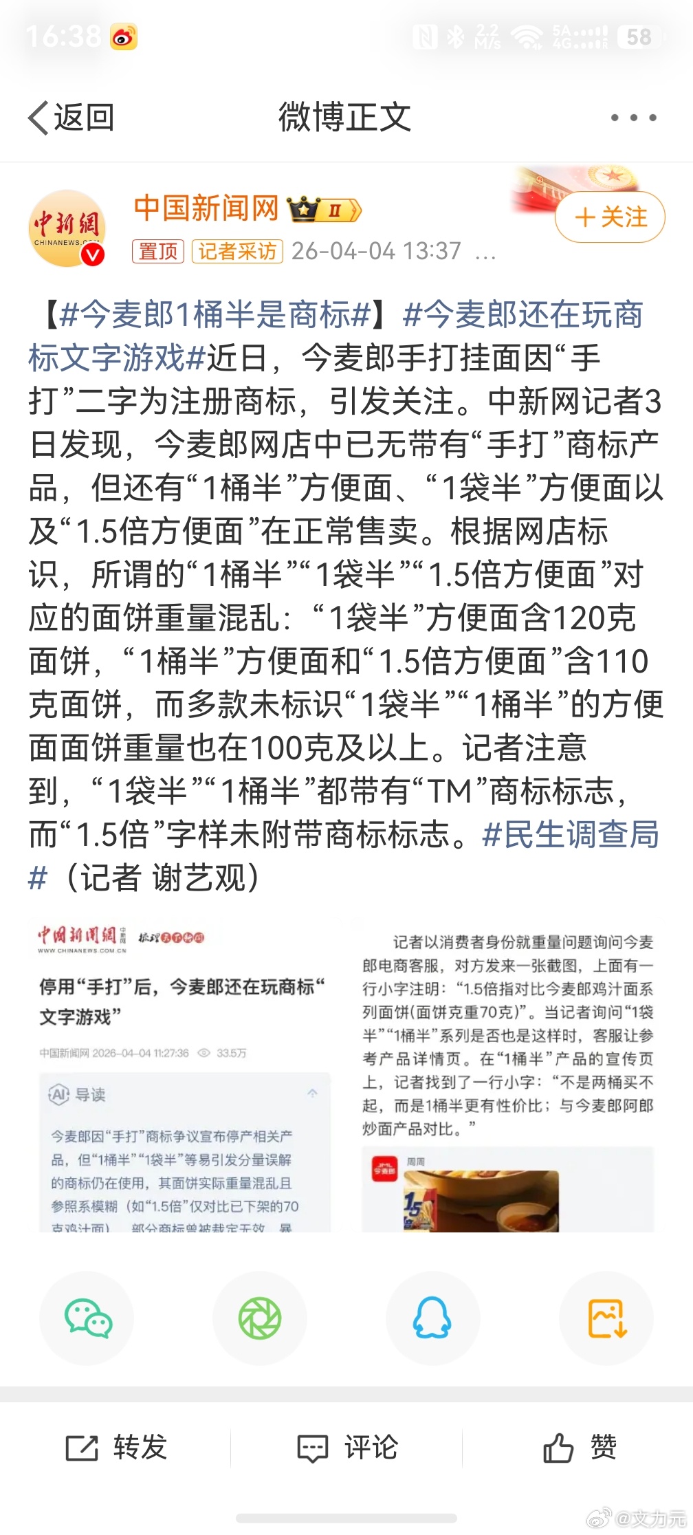 今麦郎1桶半是商标,还好,对我来说不影响啥,因为我现在变聪明了,我现在都是看克数。