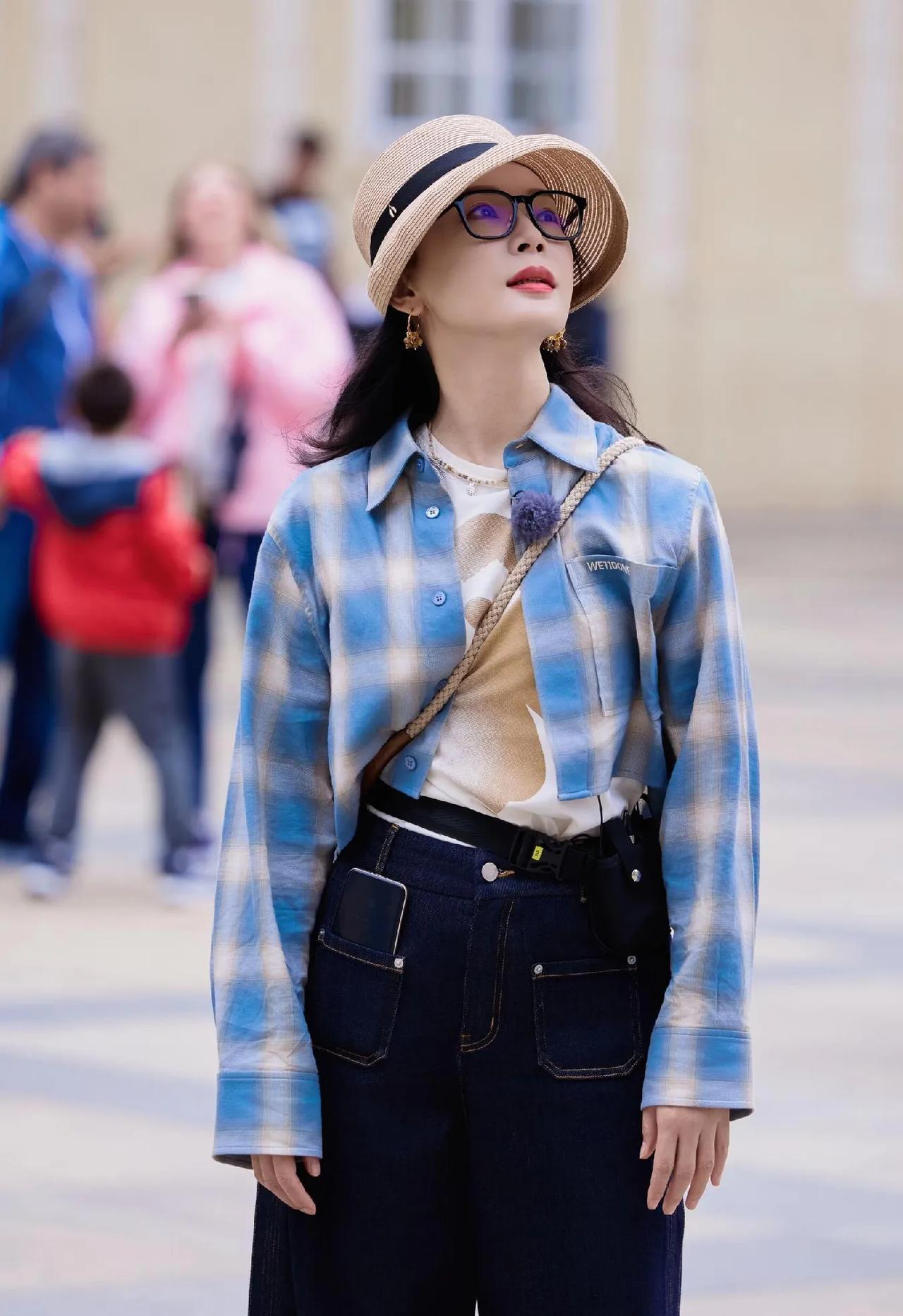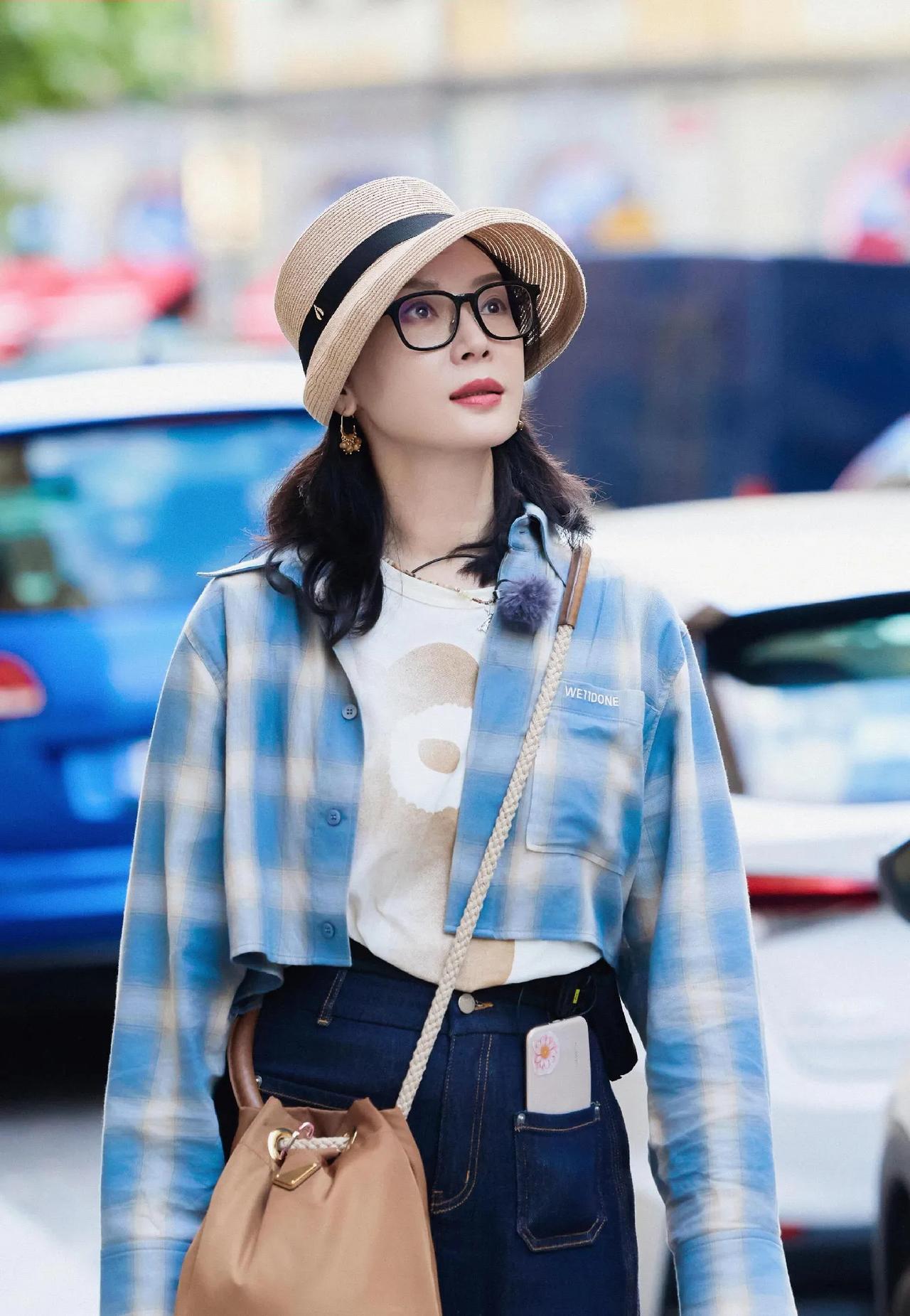 陈数:40+穿搭教科书,松弛感拉满✨ 谁懂啊!陈数这身街拍直接把中年穿搭玩明白了! 短款蓝白格纹衬衫叠穿印花白T,高腰牛仔裤拉高腰线,秒变三七分比例,减龄又显高; 草编帽+黑框眼镜,文艺感拉满,随性又高级,完全没有刻意扮嫩的痕迹。 这才是成熟女性该有的穿搭状态:不费力的时髦,由内而外的松弛感! 陈数 陈数穿搭 40+穿搭 松弛感穿搭