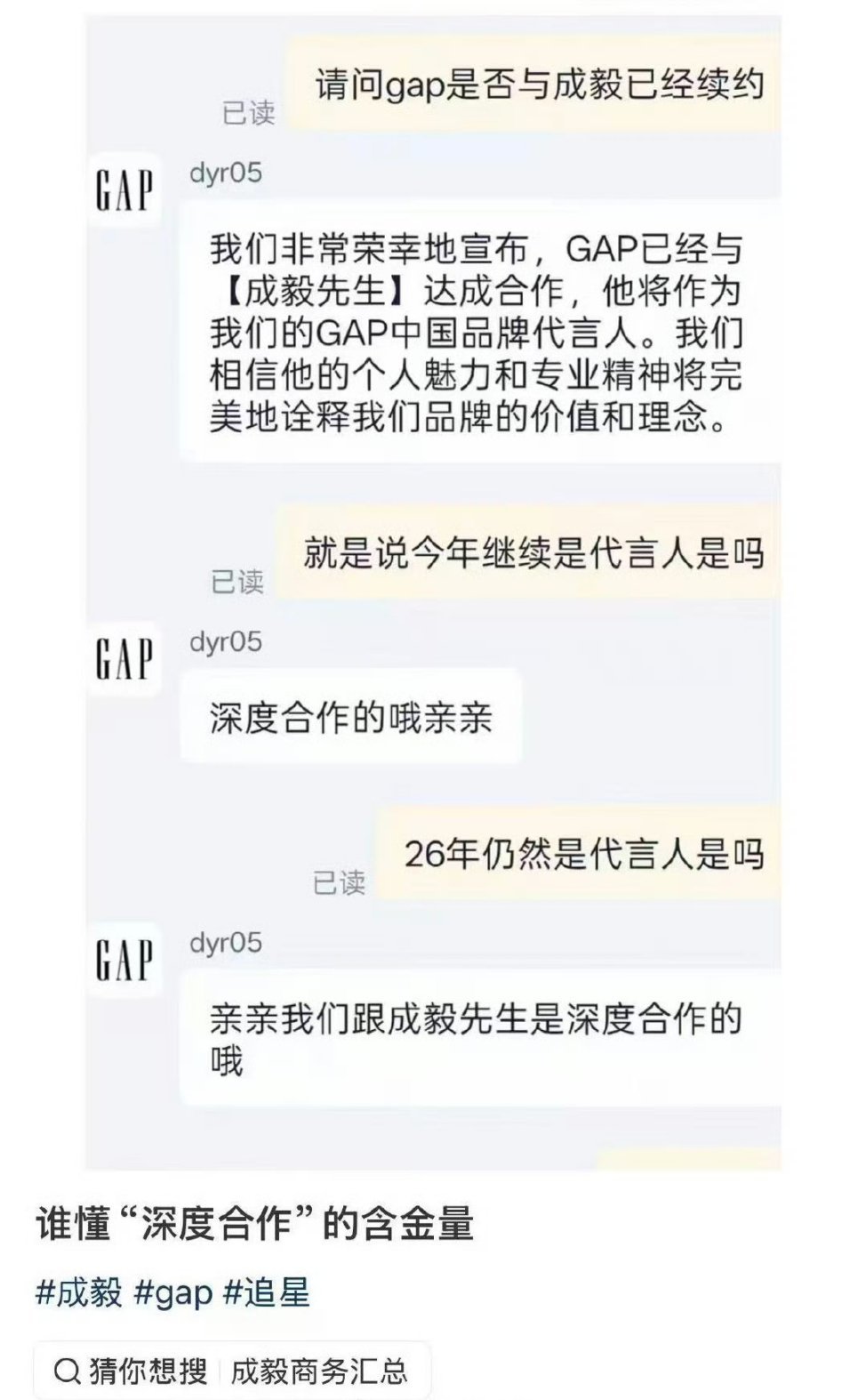 选对了代言人的重要性,GAP就这么奖励自己:“跟成毅先生是深度合作的哦~”