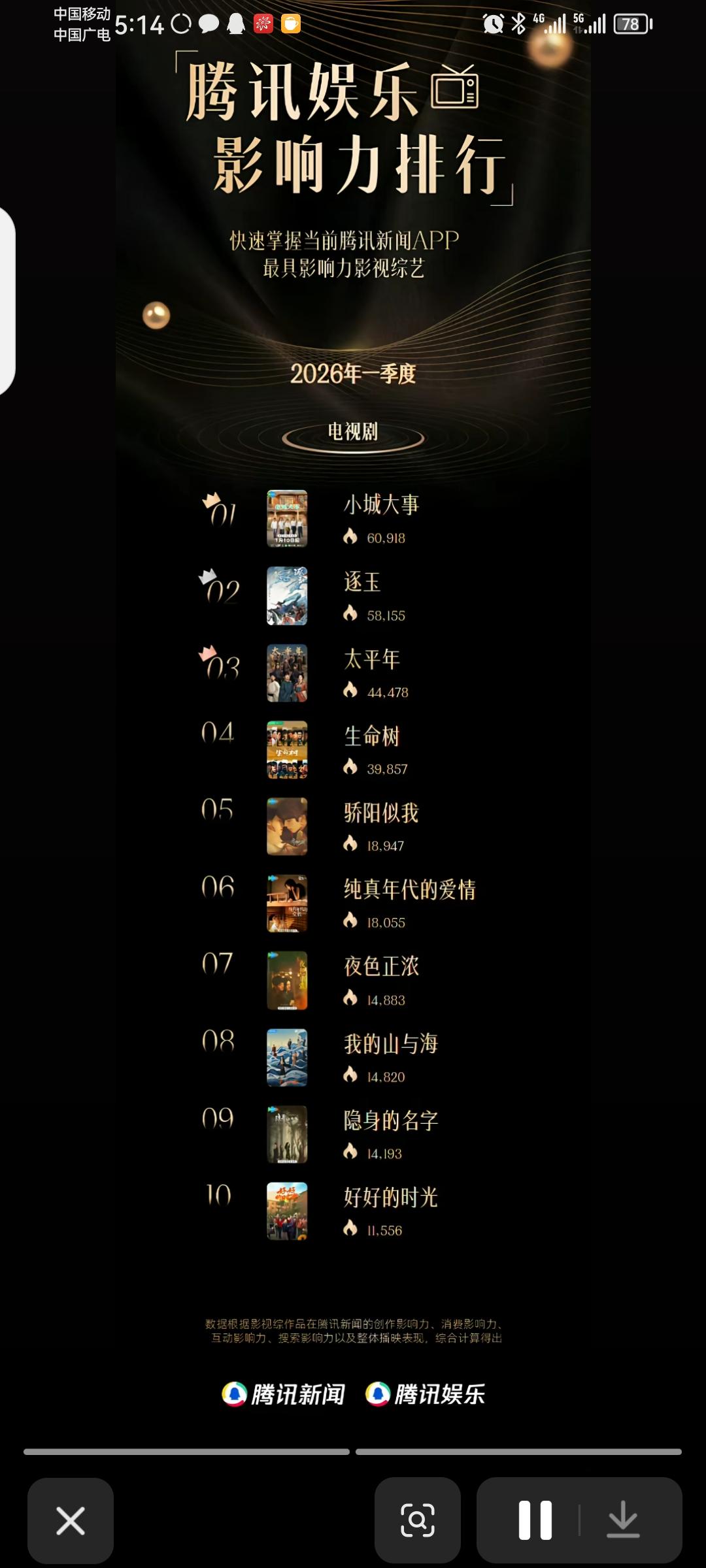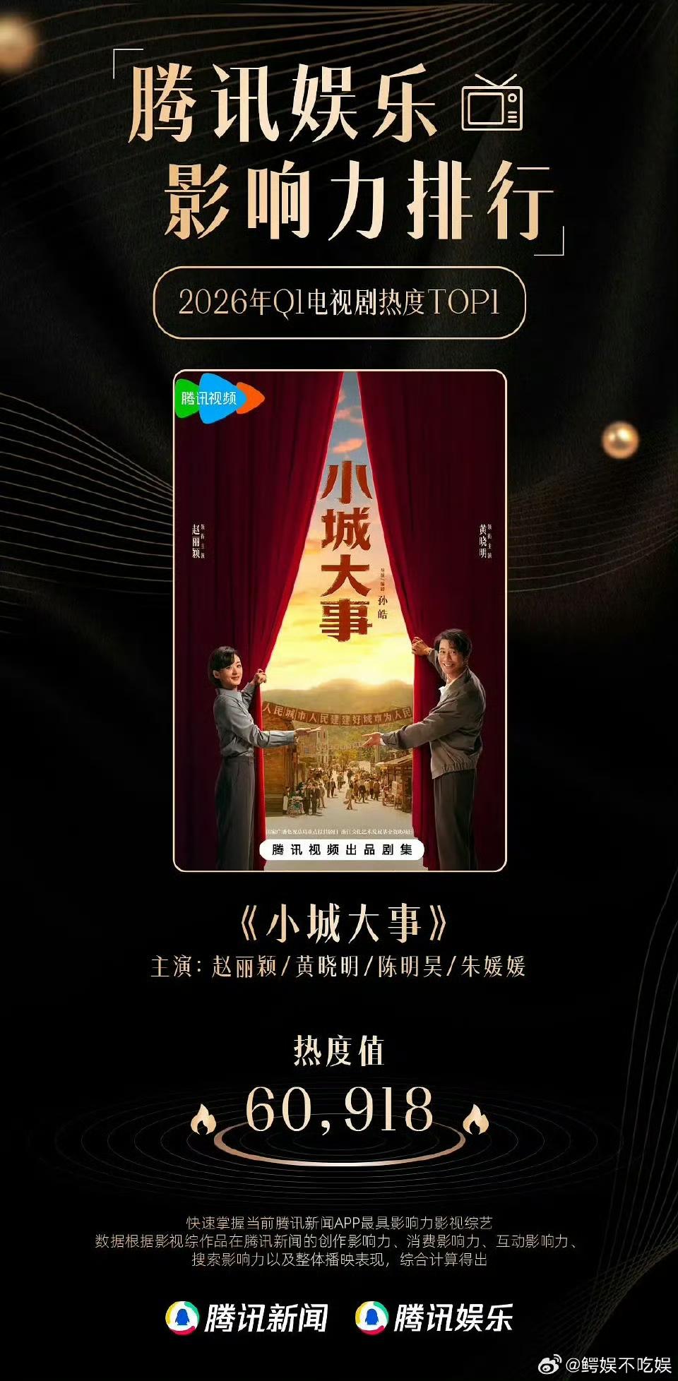 腾讯娱乐影响力排行榜⬇️⬇️⬇️ Q1最具影响力电视剧:小城大事 Q1最具影响力电视剧角色:李秋萍 不愧是你赵丽颖[赞][赞][赞]