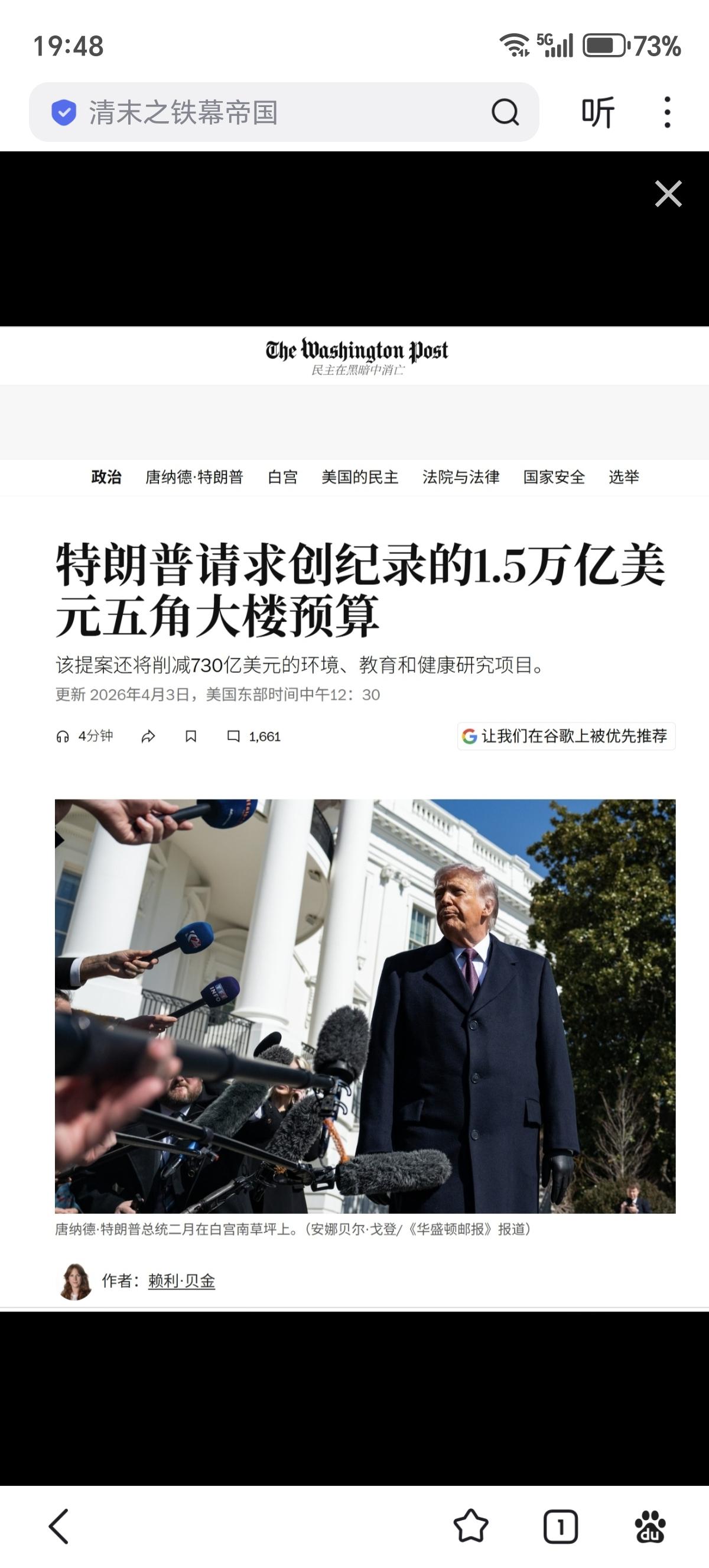 特朗普为2027财年请求1.5万亿美元的国防预算,比2026财年增加50%,约占美国GDP的4.8%~5%,接近冷战末期的水平。
