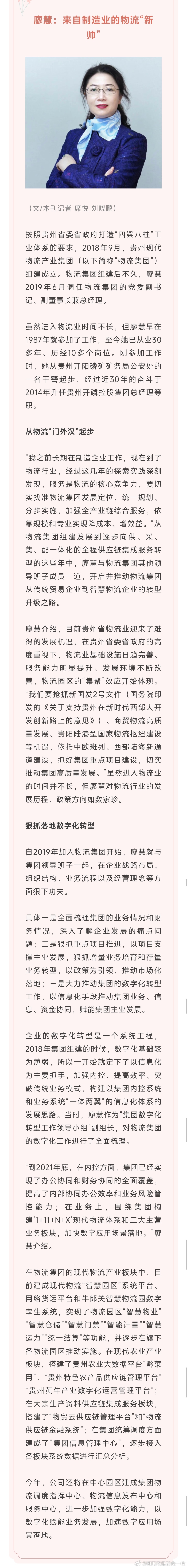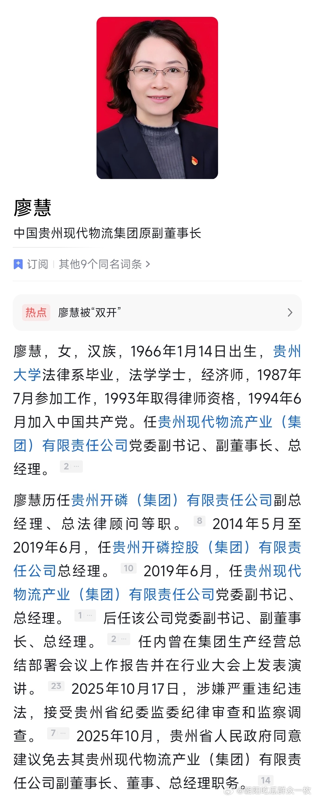 贵州现代物流产业(集团)有限责任公司原党委副书记、副董事长、总经理廖慧被开除党籍