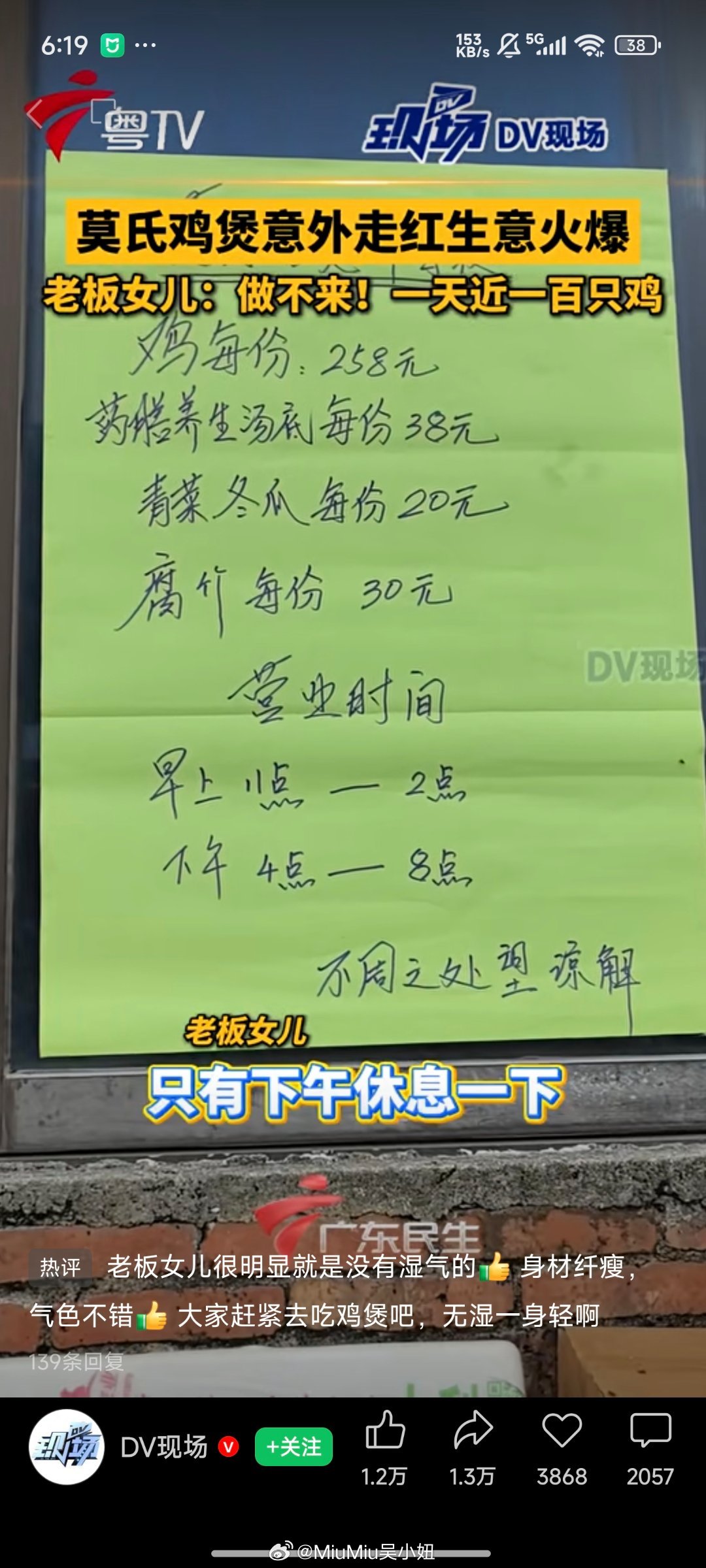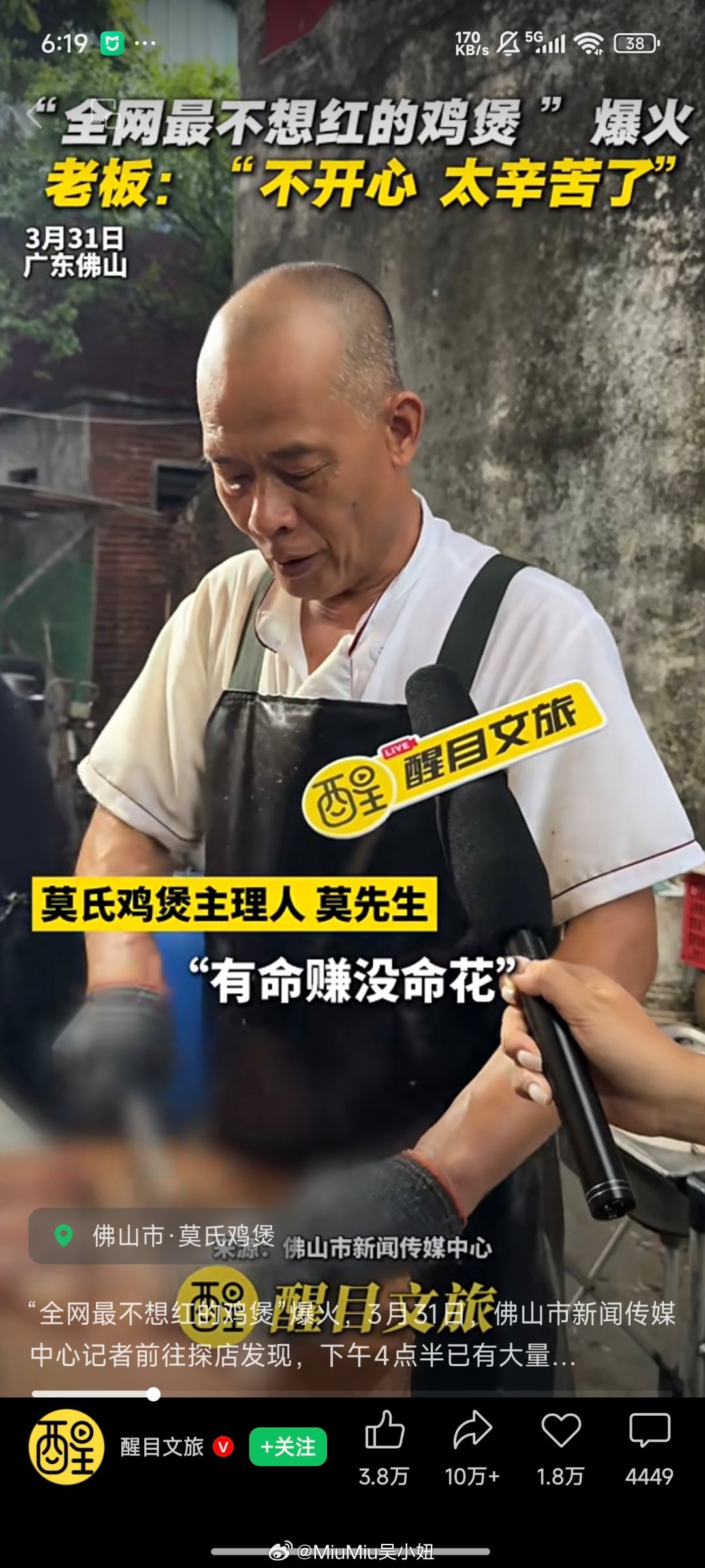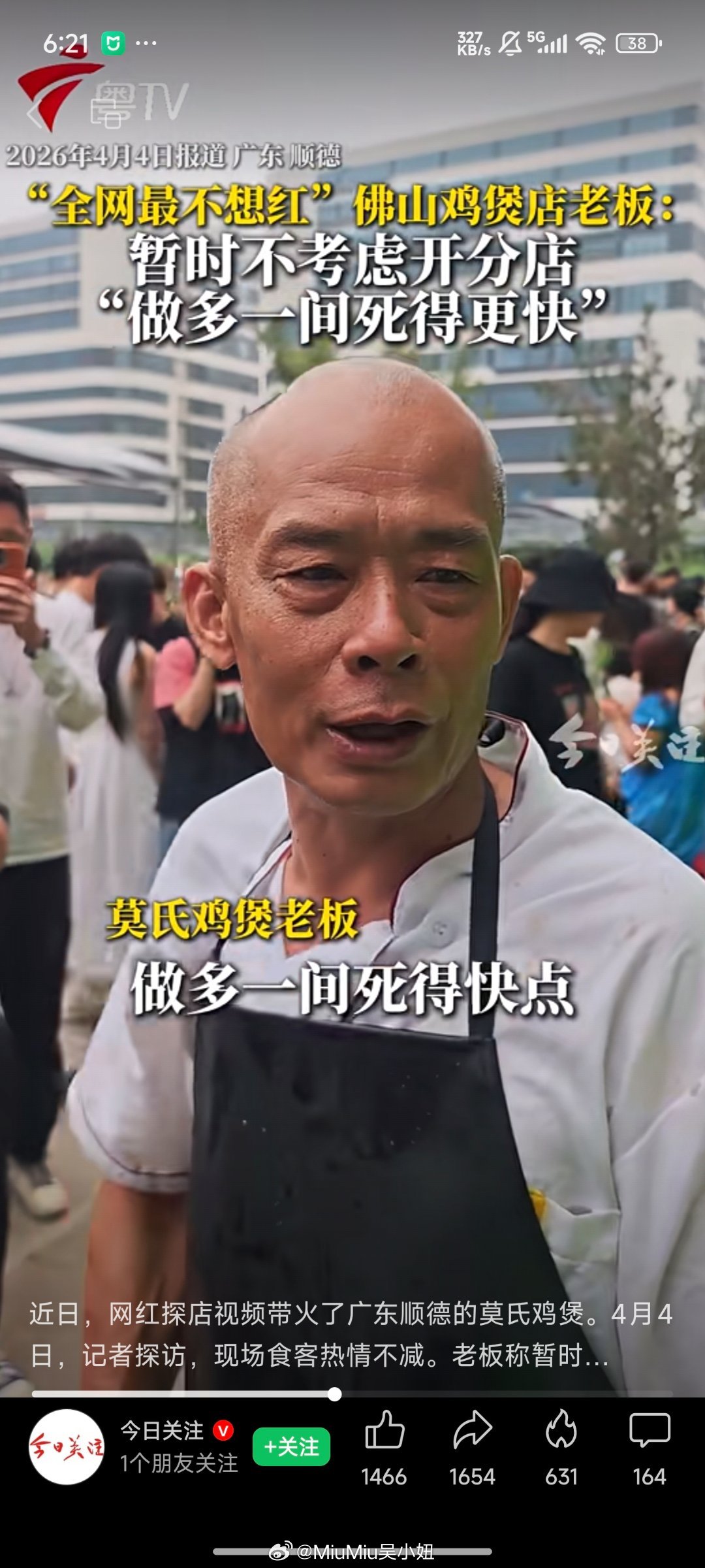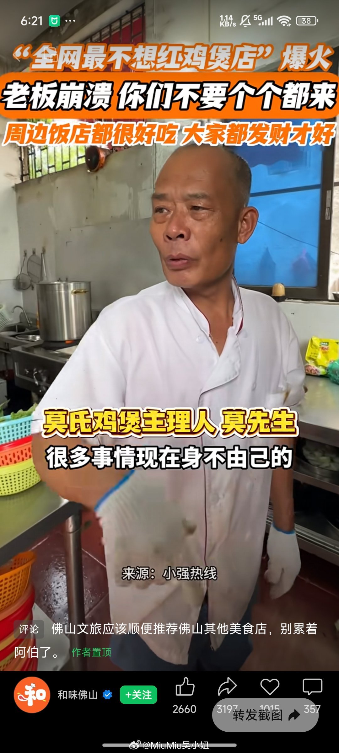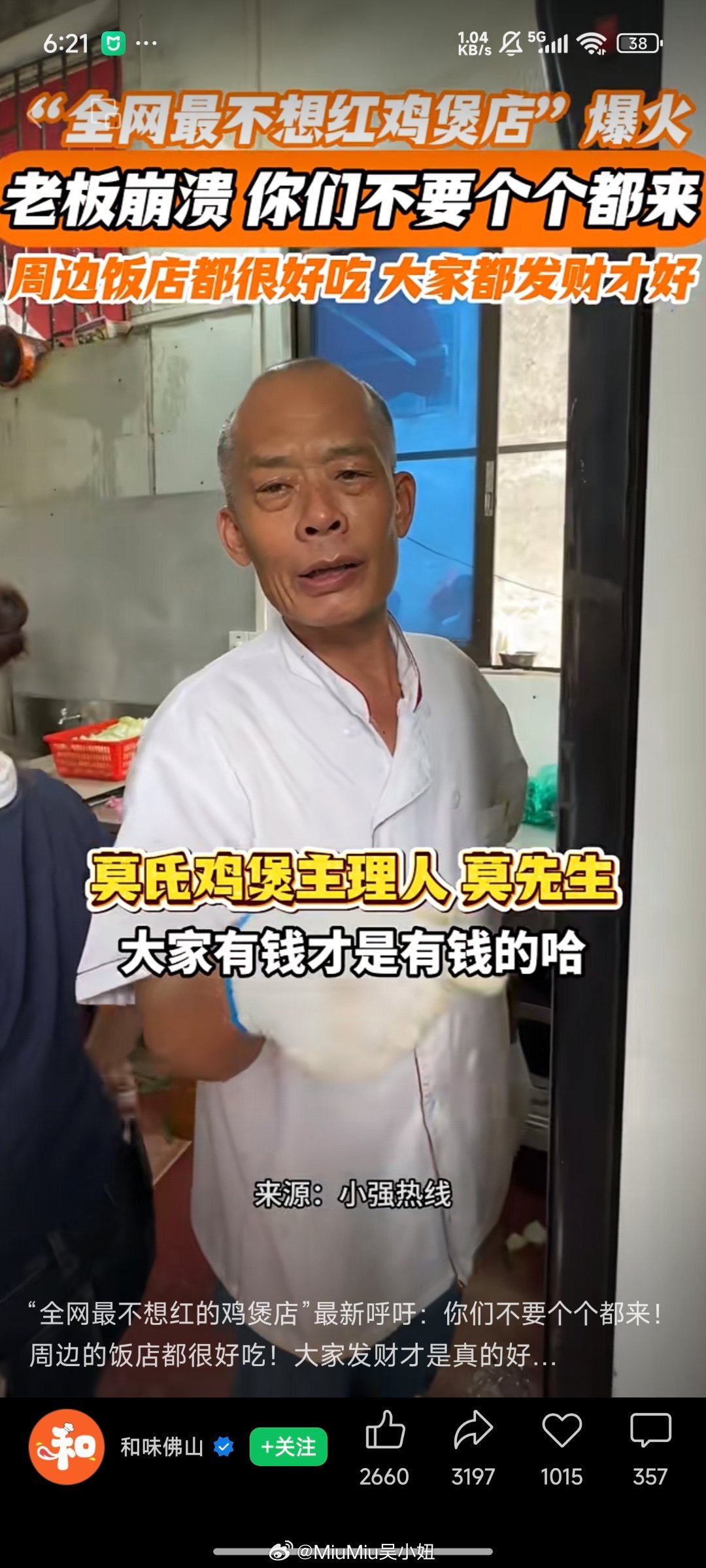 爆火鸡煲店老板称用的冰冻鸡哈哈哈清明假期前突然火的,老广对真材实料的dna引爆全网~顺德文旅好不容易被泼天的流量宠幸,连夜把老板家门口的停车场开辟出来可是老板家真的是苦死了,以前天天十桌八桌悠哉悠哉,还能早收工早唱k遛弯~现在火了晚上十二点才有空吃饭,所以老板自黑说自己用冰冻鸡人暴躁起来连口碑都不想要这种不想加班的心态真不是网友说的营销,而是老广们对工作的心态就是“长命功夫长命做”,要慢慢叹的生活才有滋有味,现在天天这么多人排队去,等于本来965的休闲工作,突然工作量加到了9127,哪怕给你三倍人工,都没命花本来很想在清明假这两天去尝一下的,等过一阵子没那么火了再去捧场吧符合老广的真实心态了~~
