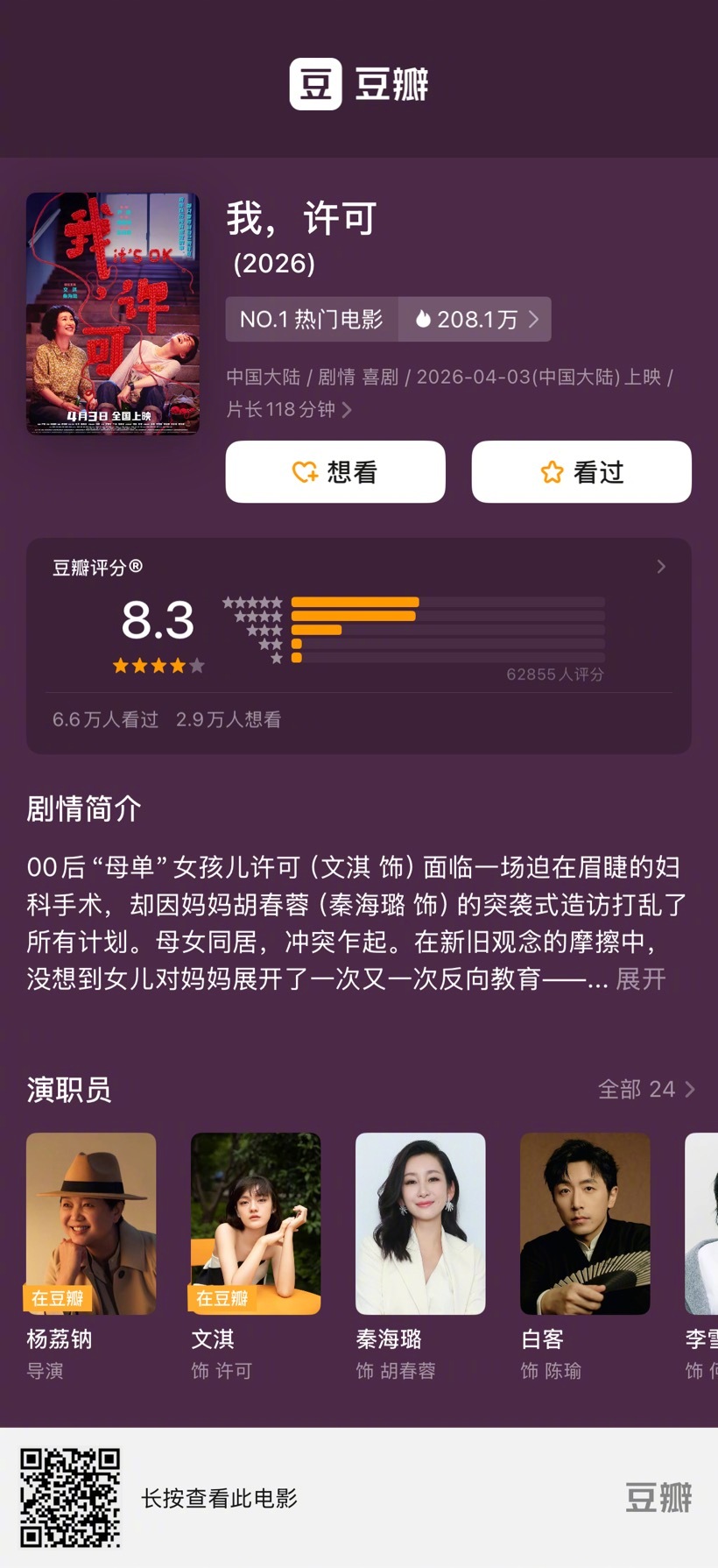 今天开分的两部华语电影都不错啊!《火遮眼》8.8分《我,许可》8.8分