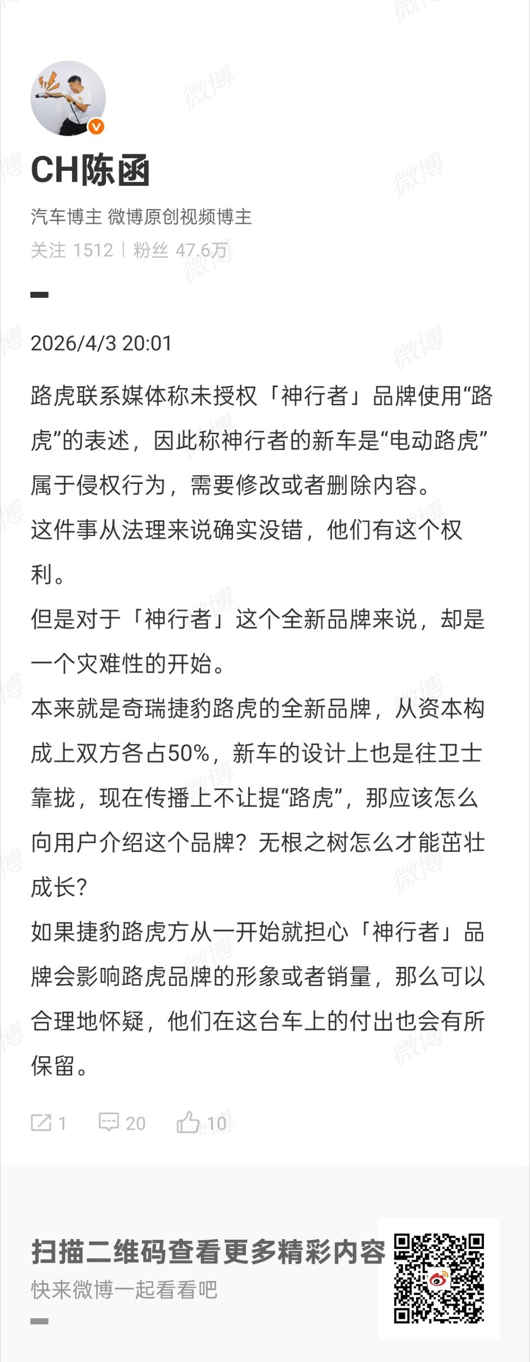 如果是神行者自己跟媒体说:大家要避免用“路虎”两个字,我觉得都还好说。要是路虎蹦出来说这是侵权,那这下神行者就尴尬了