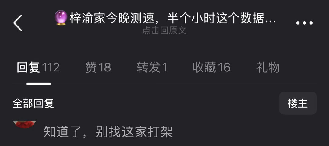 “梓渝家今晚测速,半个小时这个数 据”“知道了,别找这家打 架”