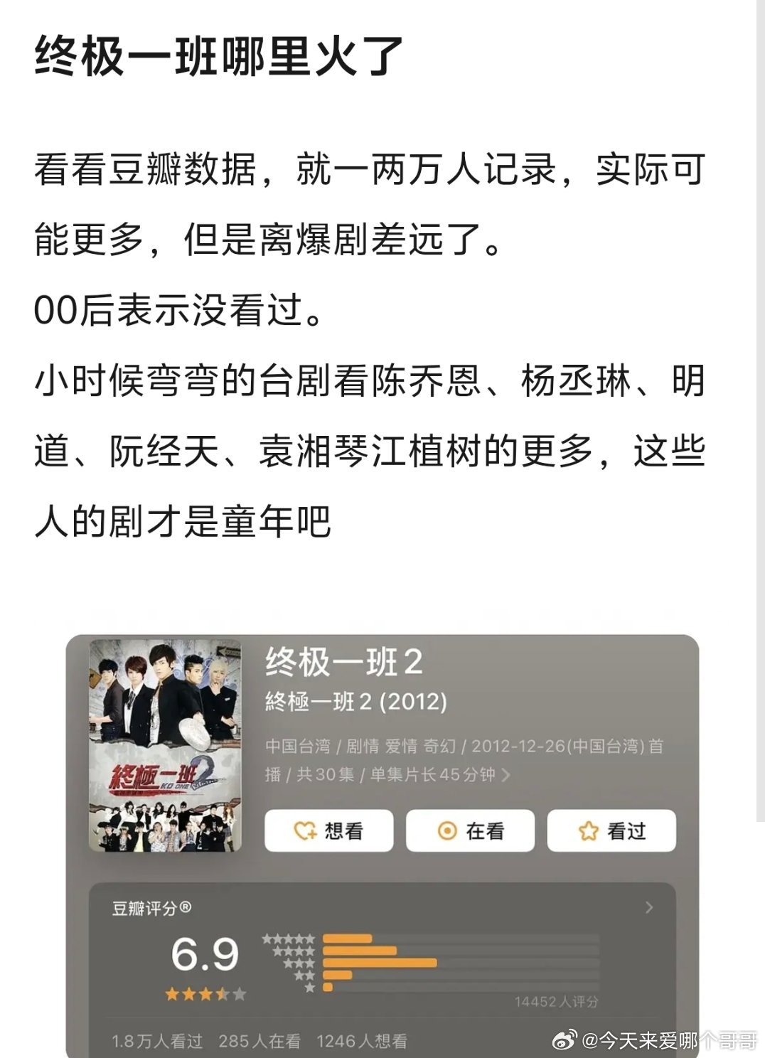 豆瓣因为终极一班到底是不是大爆剧吵两天了