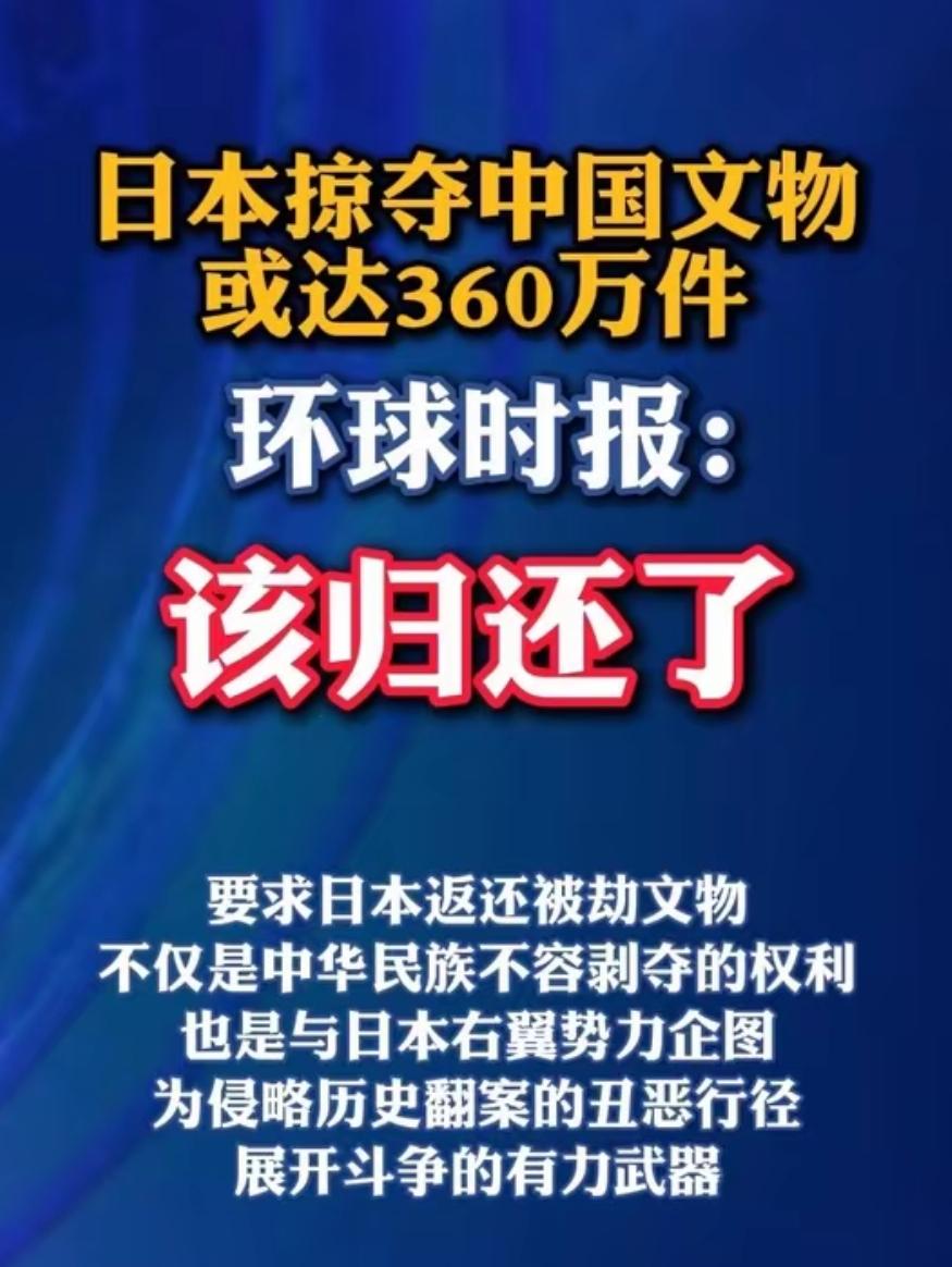 别被谬论忽悠!放弃战争赔偿≠无权追讨日本劫掠文物 一些人错误地宣称,中国政府在1972年中日联合声明中放弃了对日本的战争赔偿要求,所以无法对日文物追索。这一观点毫无根据。日本该归还文物了! 1972年《中日联合声明》中中方放弃的仅为国家层面战争赔偿,文件全文并未提及放弃文物追索相关权利。战争赔偿与文物追索在国际法中属于相互独立的法律范畴,二者不存在任何从属或替代关系。 1907年《海牙第四公约》早已明确禁止战时掠夺他国文化财产,日本侵华期间的文物劫掠行为本身就属于非法行径。非法掠夺的文物所有权不会发生转移,日本自然不能以此为借口长期霸占中国文物。 根据国民政府战后清理战时文物损失委员会的统计数据,日本侵华期间掠走的中国文物数量超360万件,大量文化古迹也遭到严重破坏。这些文物是中华文明的核心遗产,其主权从始至终都牢牢属于中国。 中方当年放弃战争赔偿,是基于推动中日两国友好发展的外交考量,并非认可日本对劫掠文物的占有权。我国政府从未在任何官方文件中声明放弃对流失日本文物的追索权利。 部分人刻意混淆两个不同的法律概念,本质是在歪曲历史事实,试图为日本推脱归还文物的历史责任。这种言论既无史料依据,也违背国际公约准则,根本不具备任何合理性。 日本作为二战战败国,归还非法劫掠的中国文物,是其应当履行的历史道义与国际法律义务。坚持追索流失文物,也是维护我国文化主权与民族尊严的必要行动。 各位读者你们怎么看?欢迎在评论区讨论。
