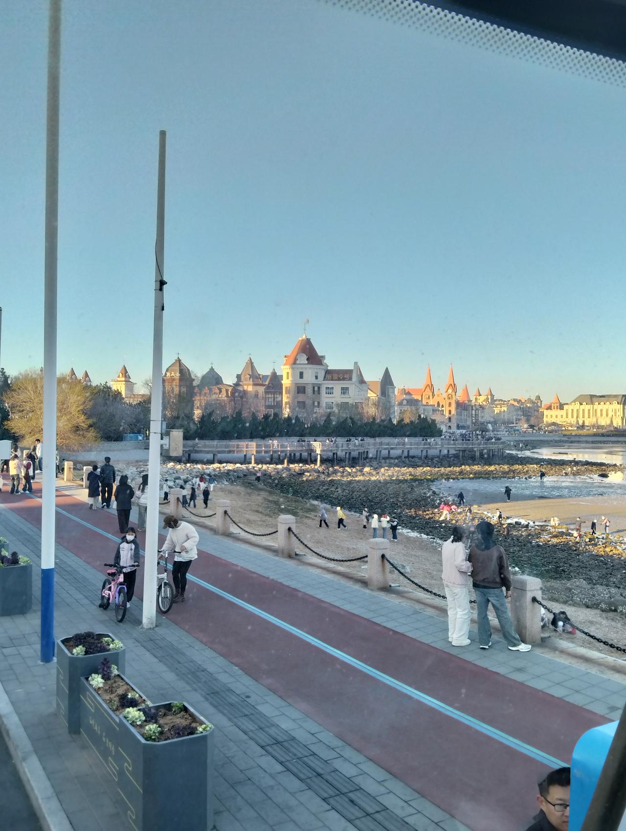 今天下午,我与老伴从烟台火车站登上17路公交车,坐了49站,到达终点站山东商务学院,又返回烟台火车站。一路上烟台海岸美景尽收眼底。浩瀚大海,海鸥飞翔。春花烂漫,人潮汹涌。渔人码头的塔楼,让你似乎走进城堡。 爱在烟台,难以离开。