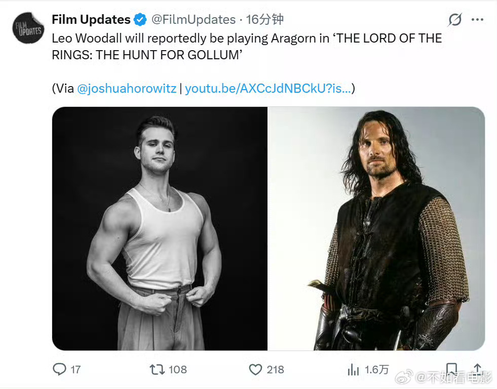 新版阿拉贡演员 新版阿拉贡!《指环王》系列新电影《指环王:猎捕咕噜》导演安迪·瑟金斯确认将重新选择演员来饰演阿拉贡,维果·莫滕森不会回归。根据媒体最新爆料,出演过《白莲花度假村 第二季》《BJ单身日记4》的演员利奥·伍德尔是人选之一。