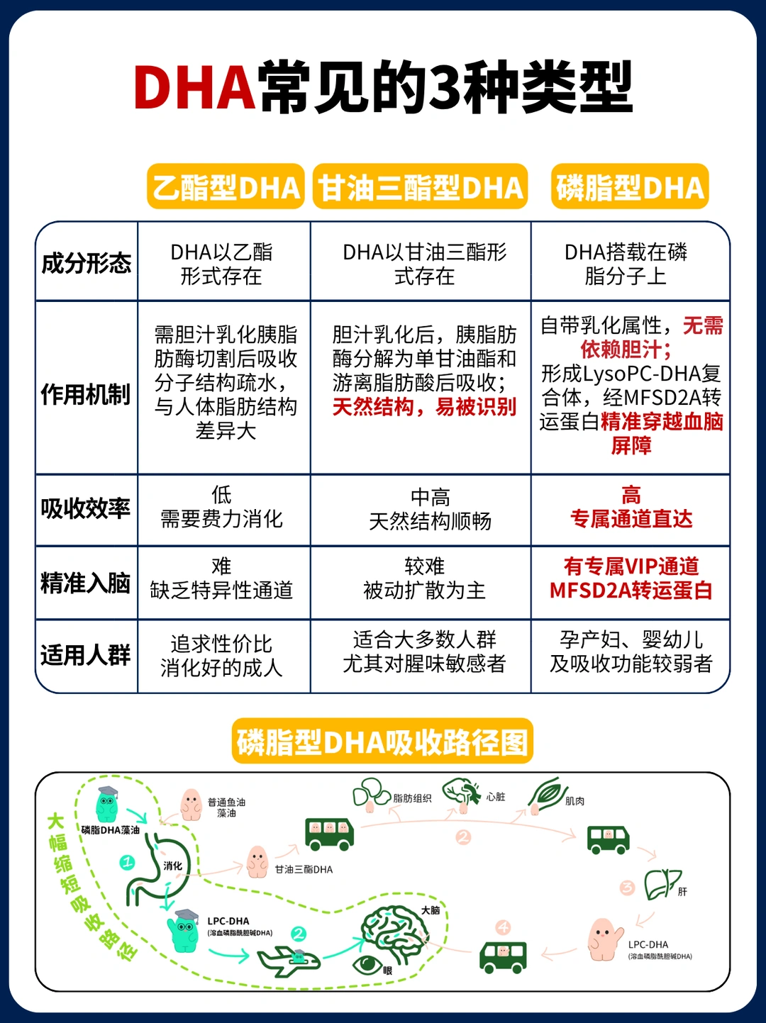 所以想要补得有效,第一步就要选对DHA的类型,因为不同结构的DHA,吸收率天差地别