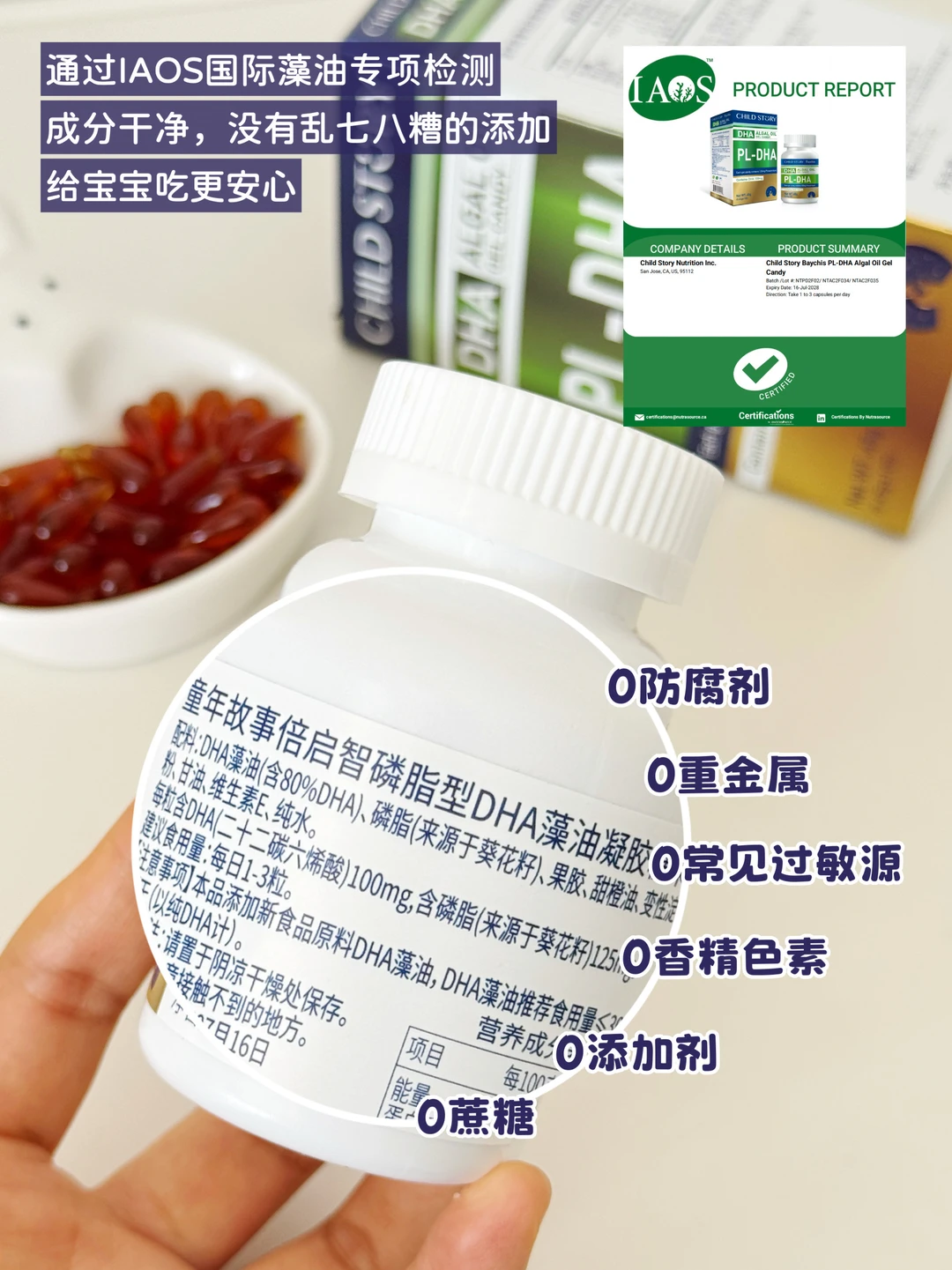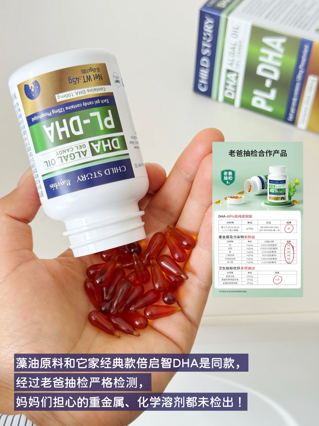 搞懂这些关键差别后,我果断给娃换成了童年故事全新升级的倍启智磷脂型DHA,它依旧保留了80%高纯度藻油,原料经过老爸抽检严格检测,妈妈们担心的重金属、化学溶剂都未检出!安全品质一脉相承,给宝宝吃更放心!