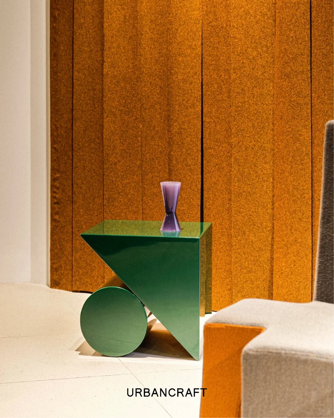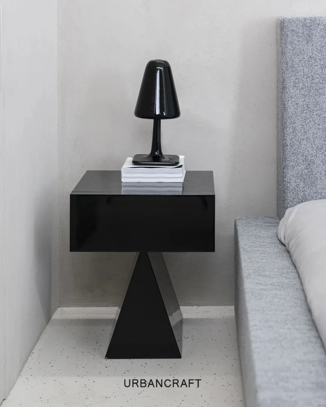 URBANCRAFT 以三角几何为核心语言,用利落的形体与清晰的结构,打造兼具视觉张力与实用功能的边 桌及床边柜,于简洁之中,定义日常的秩序与分寸。