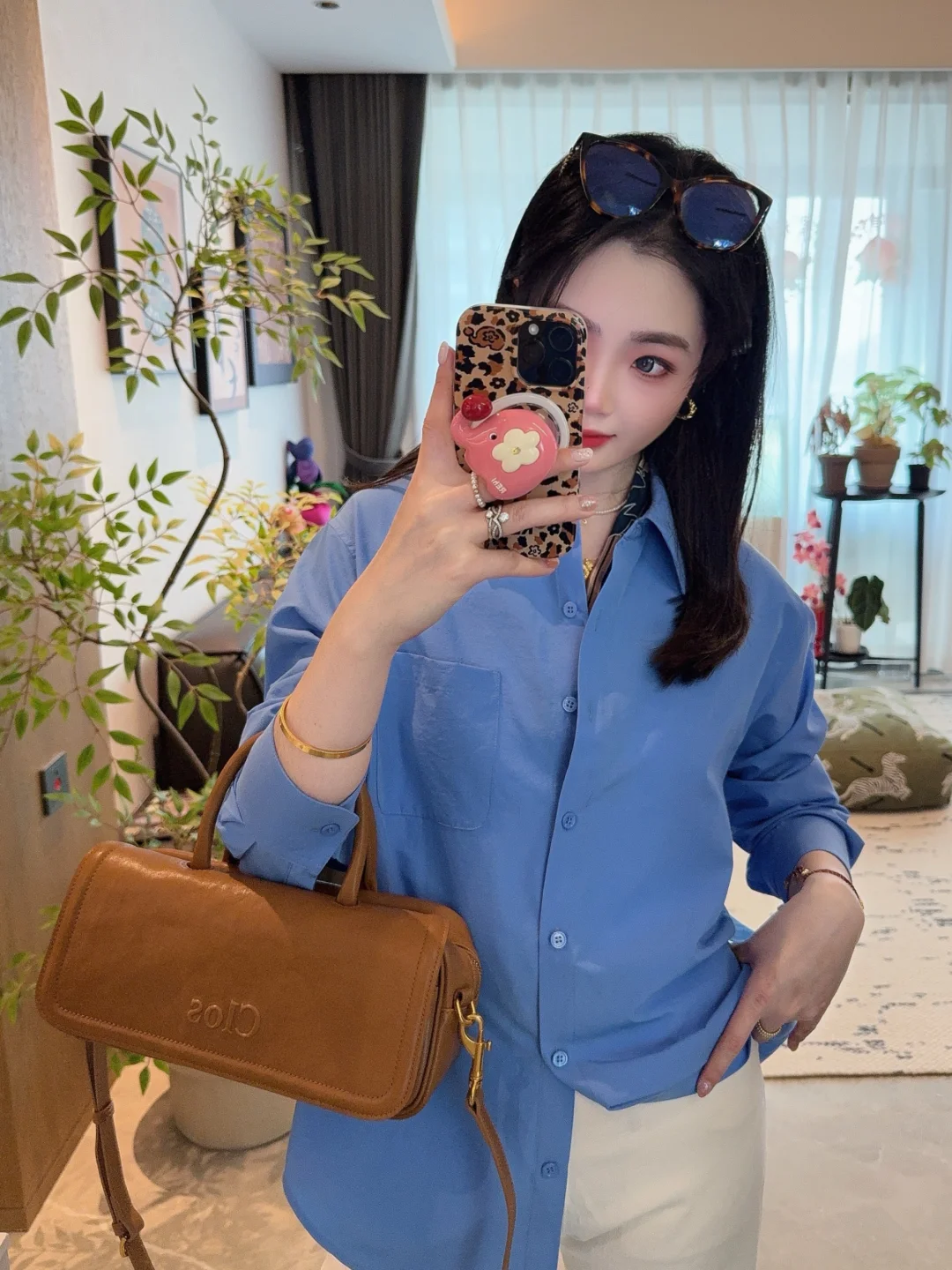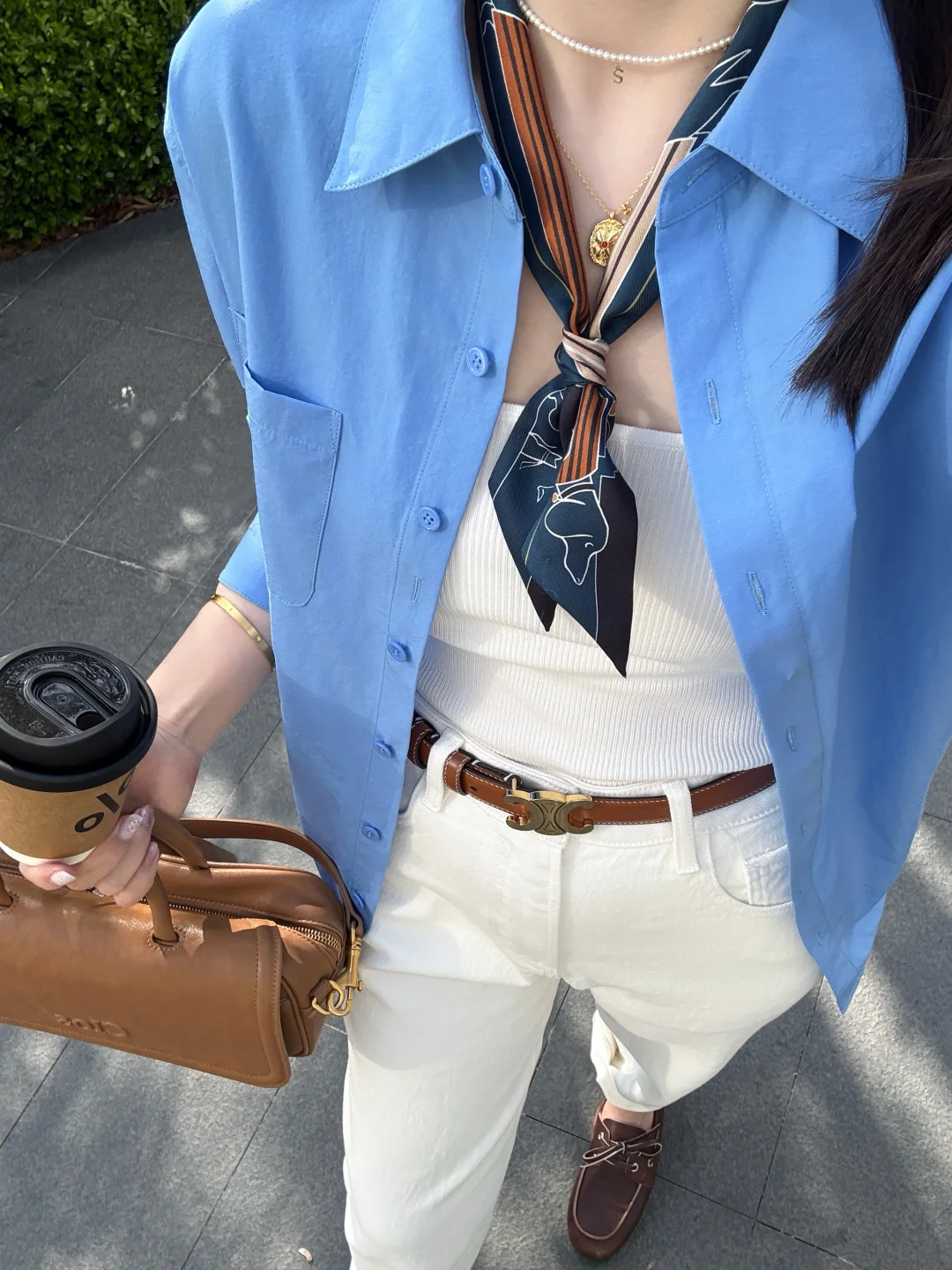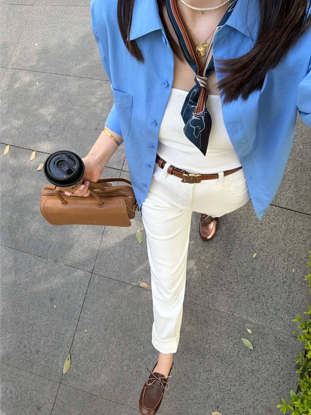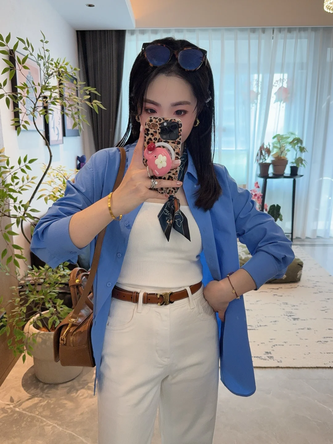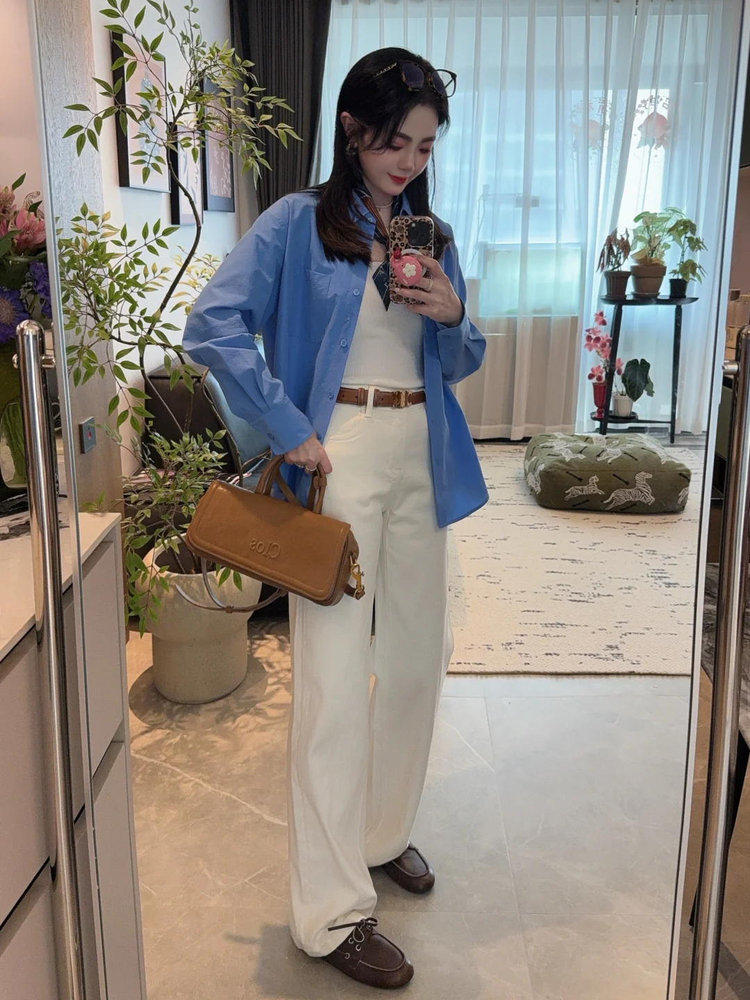 早春老钱感通勤💙蓝衬衫简直是打工人的神!