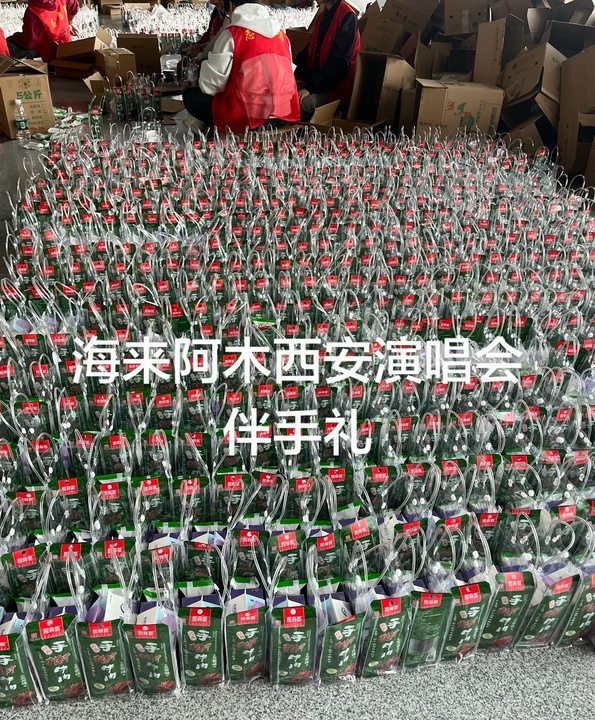海来阿木西安演唱会伴手礼海来阿木西安演唱会的伴手礼 海来阿木西安演唱会也太用心了!给到场粉丝准备的伴手礼,打包现场密密麻麻全是,这宠粉程度直接封神!