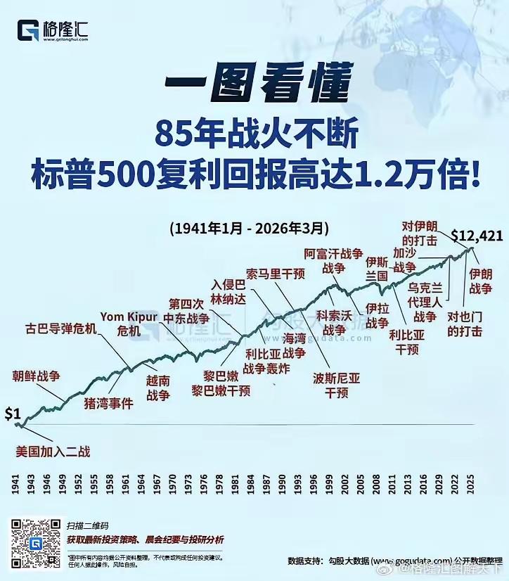 这图值得细品!85年战火不断,标普500复利回报高达1.2万倍!