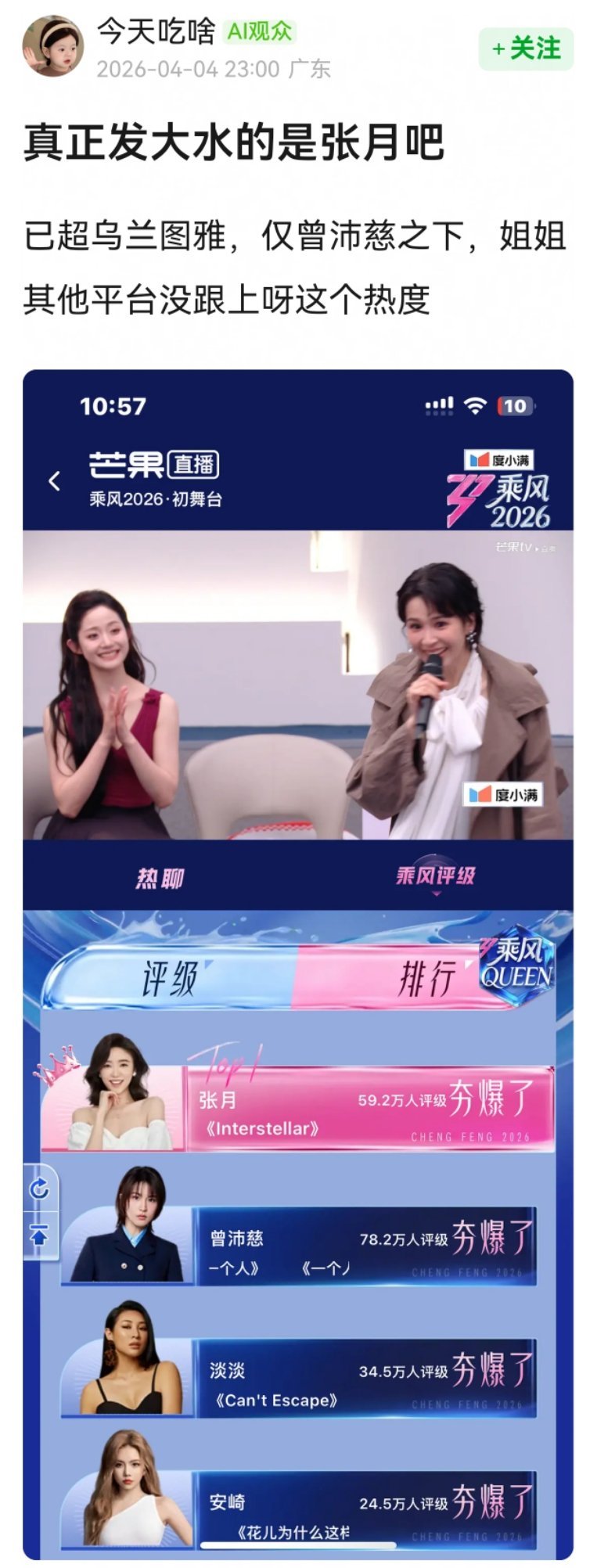 不允许黑马出现吗。。。张月505票李小冉安崎 票数谁能看出来李小冉50了
