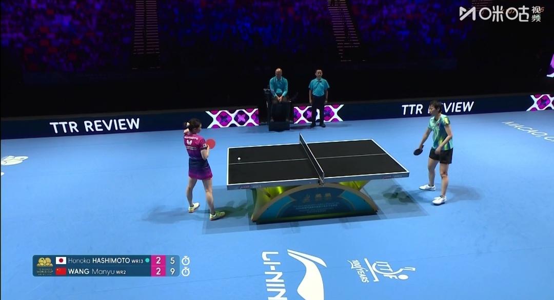 第三裁判来了! 数板! 攻防大战到第5局,王曼昱9-5领先,第三裁判来了。 轮换发球,发球方必领13板内得分!否则丢分! 第5局王曼昱11-5大胜!
