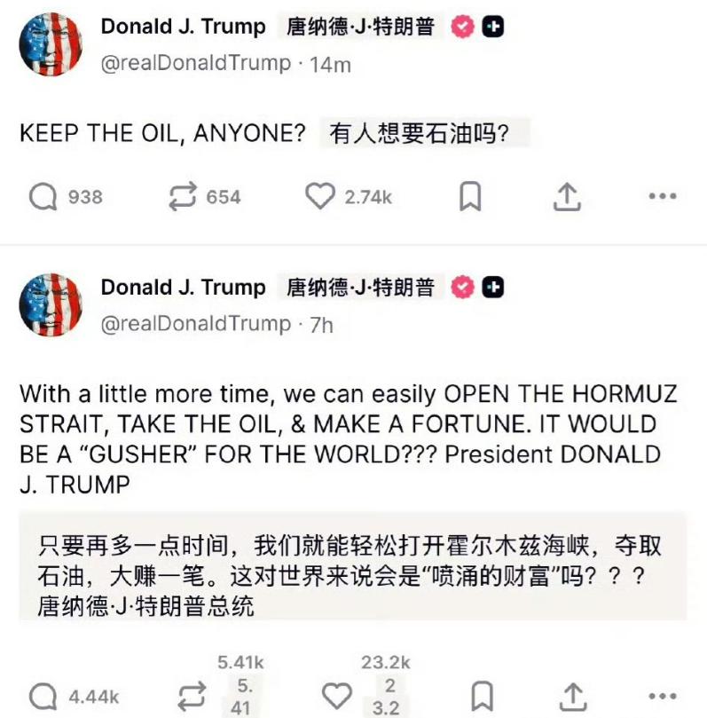 特朗普赔大了!美飞行员没救走,又搭上一群,满世界问人要石油吗? 这事得从 2026 年 4 月 3 号那天说起,美军一架 F-15E 双座战斗机在伊朗上空执行任务时被防空系统击落,两名飞行员弹射逃生,这一下可把特朗普政府给急坏了。 本来想着派救援部队过去把人捞回来,结果救援行动活生生演成了葫芦娃救爷爷的戏码,不仅没把人全救出来,反而又搭上了好几架飞机和不少士兵。 当天中午,美军中央司令部紧急派出了至少两架 HH-60 铺路鹰救援直升机、一架 HC-130J 战斗王 II 远程搜救飞机还有一架 MQ-9 死神无人机,浩浩荡荡开进伊朗境内救人。 他们想着速战速决,先救起一个飞行员就赶紧撤,可伊朗方面早就布好了口袋阵。 救援直升机刚到目标区域上空,地面上的防空火力就跟雨点似的打过来,HC-130J 加油机的机腹完全暴露在高射炮和便携式导弹的射程里,正在空中加油的直升机悬在半空动弹不得,成了活靶子。 短短几分钟交火,HC-130J 上好几名机组人员负伤,加油管线被迫紧急脱离,救援行动只能中断,最后只能眼睁睁看着另一架直升机带着救起的一名飞行员仓皇撤离,把另一名飞行员孤零零地留在了伊朗境内。 更糟的是,后续派去支援的 F-16 和 A-10C 战机也被伊朗用灵活战术反制,先后被击落,这下损失可就大了去了。 有消息说那名没被救走的飞行员已经被伊朗俘获,可特朗普在接受英国《独立报》电话采访时,被问到飞行员被俘会怎么回应,他只支支吾吾说了句 “我没法说,因为 —— 我们希望不会出现那种情况”,然后就匆匆挂了电话,连具体的搜救细节都不肯透露。 这态度让美国国内不少人吐槽,说他这是心虚了,毕竟这次救援行动的损失实在太难看。 就在救援行动失败的同一天,特朗普还在社交媒体上发了条让人摸不着头脑的推文,问 “有人要留着石油吗?”。 这话一出,全世界都看明白了,敢情在他心里,石油比飞行员还重要。 其实这也不是他第一次惦记别人家的石油了,早在 3 月底接受采访时,他就直言不讳地说自己最想做的事就是夺取伊朗的石油,还说要像在委内瑞拉那样,占领伊朗石油出口枢纽哈尔克岛,把那里的石油都运走今日头条。 说到委内瑞拉,特朗普在那可是尝到了甜头。 2025 年 12 月,美军直接扣押了一艘载有 200 万桶原油的委内瑞拉油轮,特朗普当时就大言不惭地说 “我想我们会自己留着”。 到了 2026 年 1 月,他更是签署行政令宣布进入国家紧急状态,美其名曰保护存放在美国财政部账户里的委内瑞拉石油收入,实际上就是把人家的石油收入牢牢攥在自己手里,还放话说美国要决定哪些油企能在委内瑞拉投资,计划精炼并出售至多 5000 万桶委内瑞拉原油。 这种明抢的做法,在他看来就是顺理成章的商业逻辑。 可伊朗这边的情况跟委内瑞拉完全不一样,人家的防空系统不是吃素的,而且国内民众反美情绪高涨。 特朗普本想着靠军事打击逼伊朗就范,顺便把石油抢到手,结果偷鸡不成蚀把米。 4 月 1 号那天他还在发表讲话,说美国几乎不需要通过霍尔木兹海峡进口石油,那些需要石油的国家要么从美国买,要么自己去霍尔木兹海峡抢,这话说得简直没谱。 他大概忘了,霍尔木兹海峡是全球石油运输的咽喉要道,每天有超过 1800 万桶原油从这里经过,一旦这里出了问题,国际油价就得坐上过山车,美国自己的经济也得受影响。 更让人哭笑不得的是,就在救援行动失败、飞行员生死未卜的时候,特朗普还在跟伊朗谈着所谓的严肃谈判,一边威胁说要是谈判破裂就摧毁伊朗的石油设施,一边又惦记着怎么把人家的石油据为己有。 这种又想打仗又想抢石油的心态,把美国的盟友都给看傻了,不少欧洲国家纷纷表示不会跟着美国去抢石油,毕竟这种强盗行径实在太丢份。 这次事件算下来,特朗普政府的损失可不小。 一架 F-15E 战斗机价值超过 5000 万美元,加上被击落的 F-16、A-10C 还有受损的救援直升机和加油机,光装备损失就得上亿美元,更别说还有人员伤亡和被俘的飞行员。 而他心心念念的伊朗石油,不仅没抢到一滴,反而因为战事影响,国际油价突破了 115 美元一桶,美国国内的加油站都开始涨价,老百姓怨声载道。 现在全世界都在看特朗普的笑话,一边是救不回的飞行员和不断增加的军事损失,一边是满世界嚷嚷着要石油的尴尬场面。 有人调侃说,他这哪是当总统,分明是在演一出滑稽剧,前面还没演完,后面又忘了自己的台词,只记得要抢石油。 至于那名被困在伊朗的飞行员,估计也只能自求多福了,毕竟在特朗普眼里,石油可比人命金贵多了。
