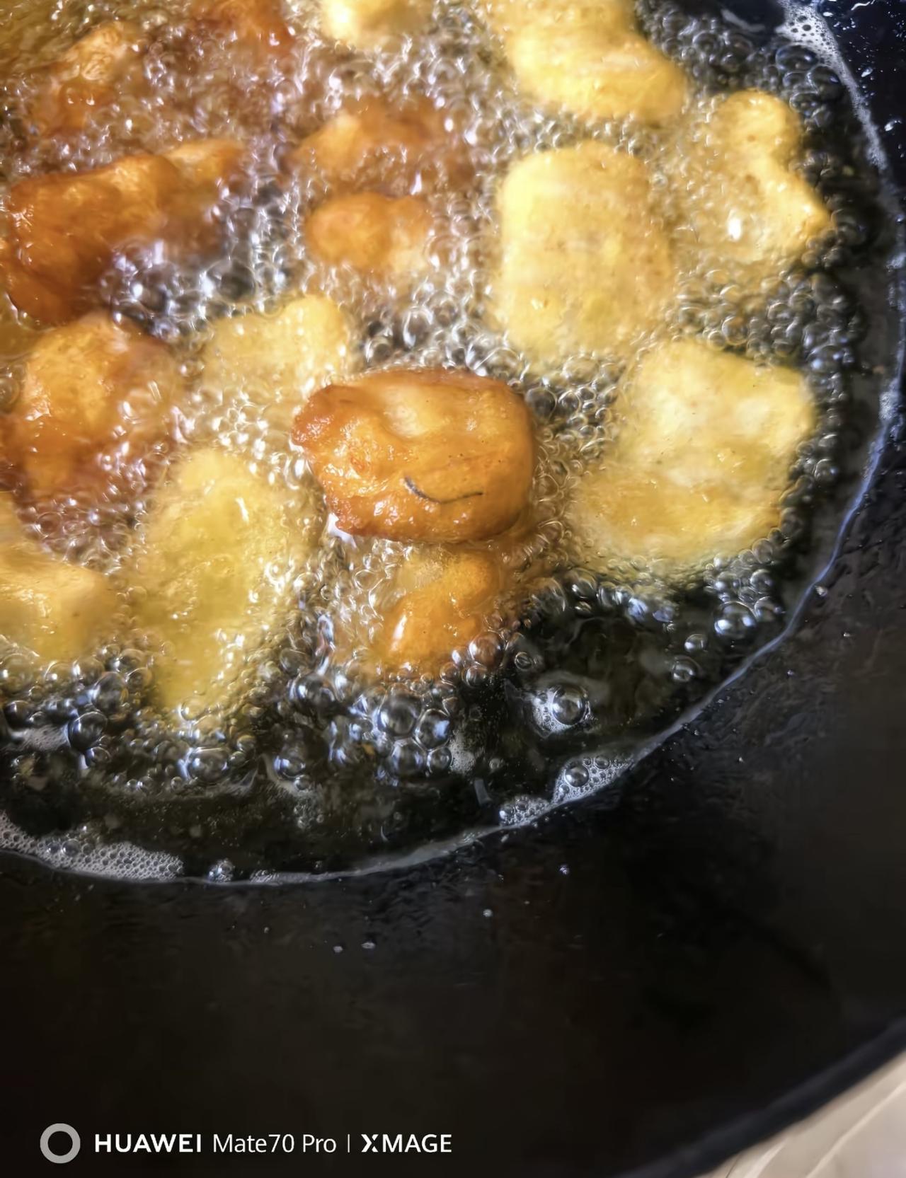 网友吐槽自己在胖东来买的自营唐扬鸡块,在下油锅炸的时候,发现一个鸡块里面有黑色的