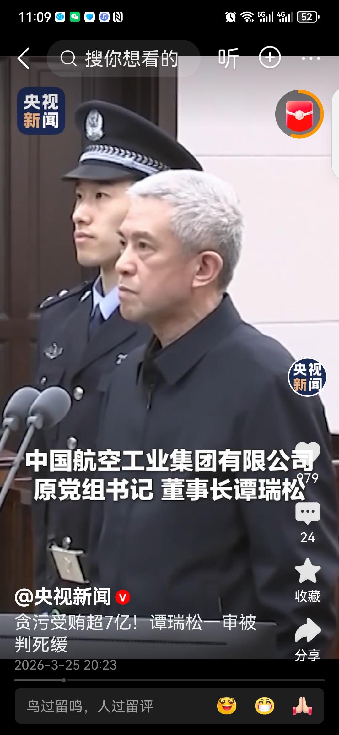 军工巨贪谭瑞松落马! 说起谭瑞松那可不是一个简单人物,他的来头有点大,起点高,头衔大,地位高,行业特殊。 说他起点高,是说他本科毕业于北京航空学院,硕士和博士毕业于哈工程研究生,研究员级高级工程师。 说他头衔大,主要是说他曾任中航工业集团董事长,党委书记。 说他地位高,主要是因为他在航空工业行业中屈指可数的专业级别。 说他行业特殊,是指他从事的中央直属央企 ,大型国有独自军工企业特殊的性质。 他其实还有更不简单的几项: 一是罪名多,根据一审宣判,他因为贪污罪,受贿罪,内幕交易和泄露内部信息罪数罪并罚,判决死缓,没收个人全部财产。 二是错误多,搞权色交易,权钱交易,侵吞巨额公款 不如实报告个人事项,说明个人有关问题。还有一项很让人诧异,就是搞迷信活动,以他这样高级别的科学家的水平,竟然相信封建迷信这种东西,真的让人难以置信。 三是金额大,他贪污0.899亿元,受贿6.13亿元,还有内幕交易部分,涉案金额在7亿以上。 四是犯罪持续时间长。他从1994年任东安公司副总工程师,副总经理开始腐败,直到2023年退休为止,持续时间近30年 ,可以说是穷其一生都在违法犯罪,可谓毫无法纪观念,毫无敬畏之心。 他有多少钱他自己都不知道,好了现在纪委工作人员给他数得清清楚楚,然后法院判决全部没收,不知道他现在是心疼他的钱没有了,还是担心他不可能活着走出监狱? 唉!多么好的人生,多么好的前景,却落到这种田地,你这是何苦呢!