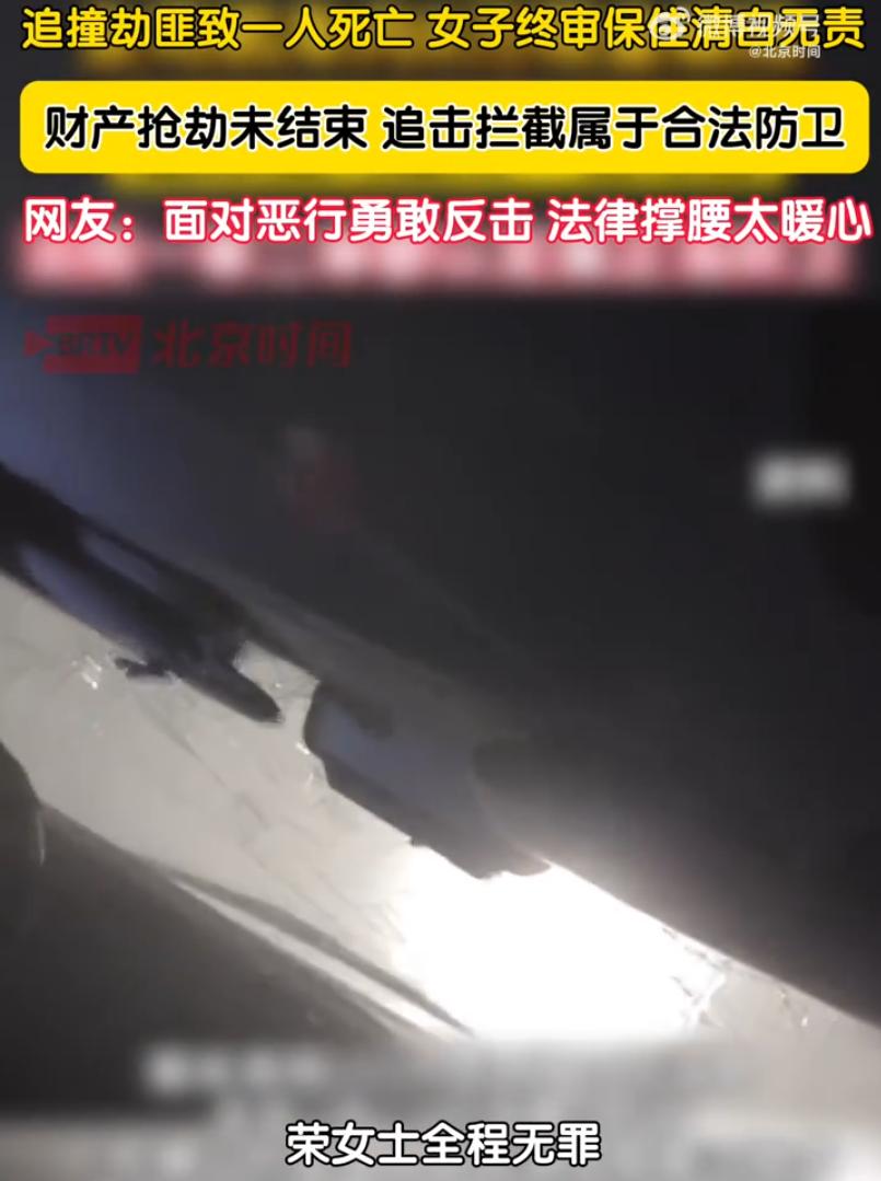 这个判决火了!广东佛山,女子带着现金开车出门时遭遇抢摩托车抢劫,钱被抢走后女子不甘心,就开车追上前撞向劫匪,导致其中一人死亡,而法院判定,女子的行为属正当防卫,被判无罪! 37岁的生意人荣女士,那天开车出门,刚从车库里出来,就被人盯上了。几个劫匪埋伏在附近,见她车一停,直接冲上来,拿铁家伙砸了车窗玻璃,扯着她的头发,把副驾驶上的手袋抢走了 手袋里装着8万多块现金,还有不少收款单据。对做生意的人来说,单据跟钱一样重要,丢了连账都收不回来 劫匪抢完,骑上摩托车就跑。荣女士当时就火了——换谁谁能不火?大白天的被人砸车抢钱,搁谁身上都咽不下这口气 她没犹豫,直接开车追了上去 追击过程中,她的车撞上了劫匪的摩托车。结果一名劫匪当场死亡,另外两个受伤 事后荣女士说,她当时就是想撞倒摩托车,把手袋拿回来,没想过要伤人。事发后她也配合警方调查,对结果表示歉意 案子到了法院,判决出来了:荣女士的行为属于正当防卫,无罪 这个结果一出,网上几乎一边倒地叫好 这个判法的分量在于,它把道理还给了普通人。一个人正在被暴力抢劫,当场追回去夺回自己的财物,这不是什么报复,这是最本能的自我保护。法律要保护的,恰恰应该是这种本能 有人可能会说,毕竟出了人命。但问题是,谁制造的危险?是劫匪自己。砸车窗、扯头发、抢钱、骑摩托车逃窜,这些行为本身就充满了暴力风险。他们选择这条路的时候,就该想到后果 法院认定正当防卫,等于说清楚了一个道理:正当的人在正当的限度内保护自己的财产和安全,不该为坏人的意外死亡背上罪名 荣女士说她不后悔追,但也很遗憾出了人命。这话挺真实的。她不是冷血的人,但当时那情况,换谁都得追 这个案子之所以让人有共鸣,是因为它贴近普通人的日常。我们都可能成为受害者,我们都希望在被欺负的时候,有反击的底气,而法律能站在你这边。