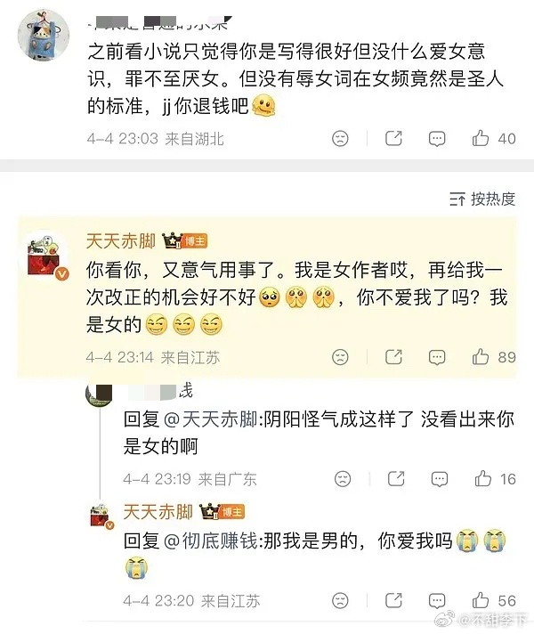还是看不懂她俩为啥闹这一出,打晋江没打到她俩头上甚至因为写的都是女强一直是被维护