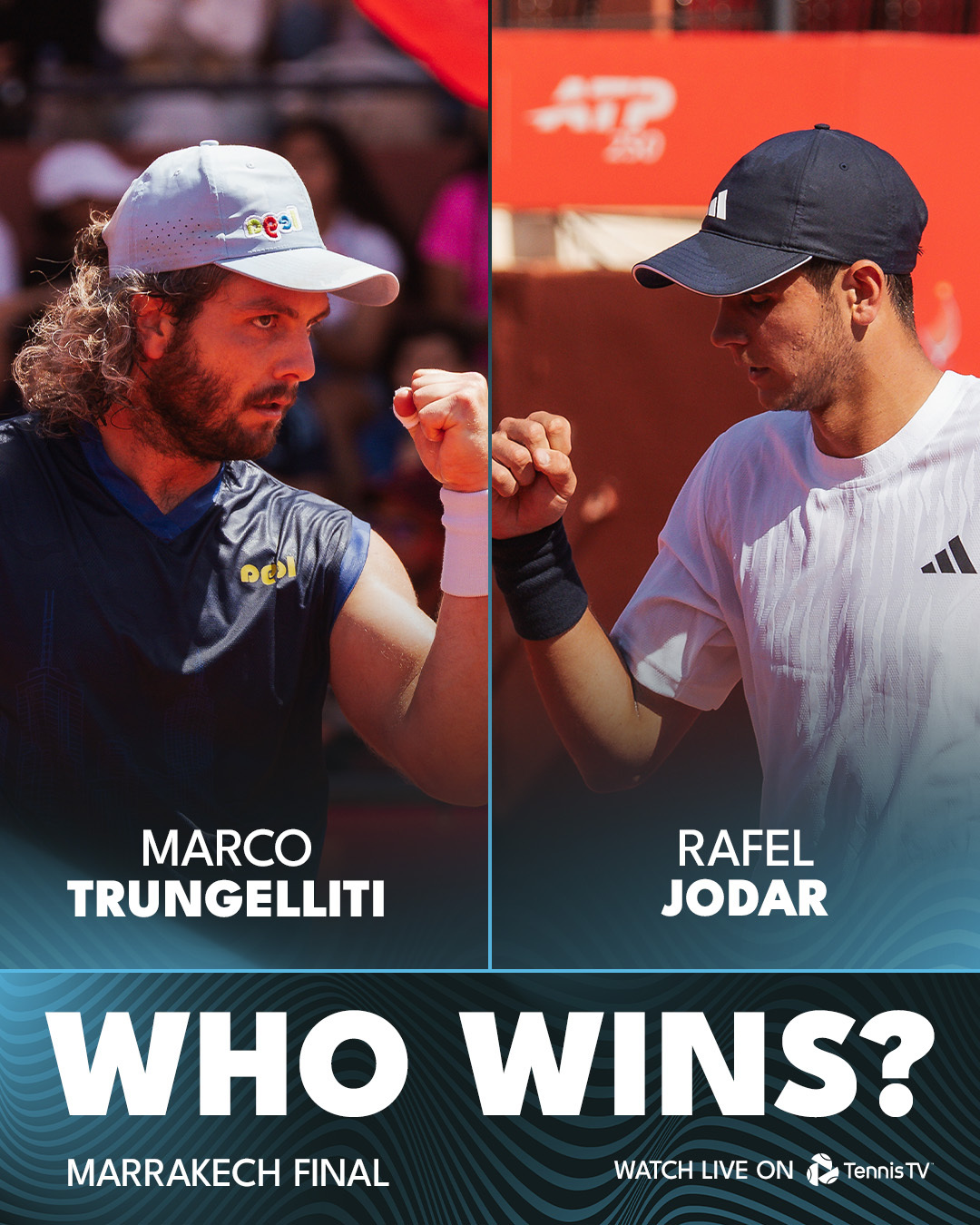 🎾摩洛哥马拉喀什站:霍达尔对特伦格里蒂一场19岁和36岁间的对决。36岁的特伦格里蒂在一周之内成为了:史上首进ATP前100最年长的球员、史上最年长首进巡回赛的球员、赛会历史第四位打入决赛的资格赛球员。他曾在十年前冒着巨大风险实名举报过赌球操作,揭开了职业网坛肮脏阴暗的一面。我们尤其乐见诚实正直的人能够取得成功。很欣慰他坚持到了现在,祝贺他!至于19岁的霍达尔,排名正如火箭般升空,前途无量。他来自西班牙,他的名字,叫Rafael。