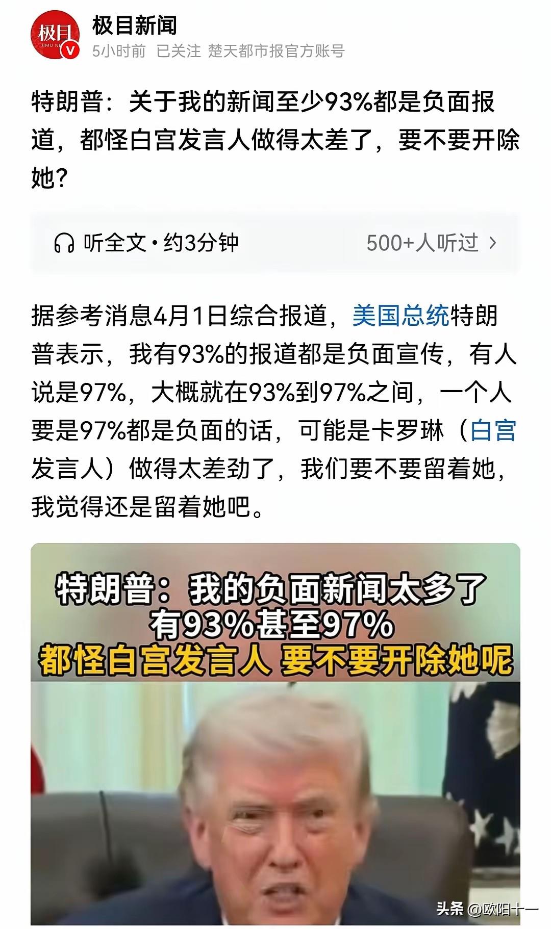 白宫发言人卡罗琳也要被特朗普解雇了?这可真是天大的委屈,卡罗琳可是特朗普第一吹啊。 最近,特朗普接受采访时表示,我有93%的报道都是负面宣传,有人说是97%,大概就在93%到97%之间,一个人要是97%都是负面的话,可能是卡罗琳(白宫发言人)做得太差劲了,我们要不要留着她,我觉得还是留着她吧。 而与此同时,卡罗琳正在华盛顿大学狂吹特朗普,面对华盛顿大学的众多学者,卡罗琳称赞特朗普“总是人群中最有学识的那一个。” 可转眼特朗普就把卡罗琳卖了,近期特朗普解雇了多名内阁成员,现在连这个铁粉卡罗琳也快难以幸免了。 真是悲哀啊,卡罗琳拖着几个月的身孕,天天在媒体面前替特朗普挡枪,面不改色心不跳的无脑吹捧特朗普,就这样还是要早到抛弃了。