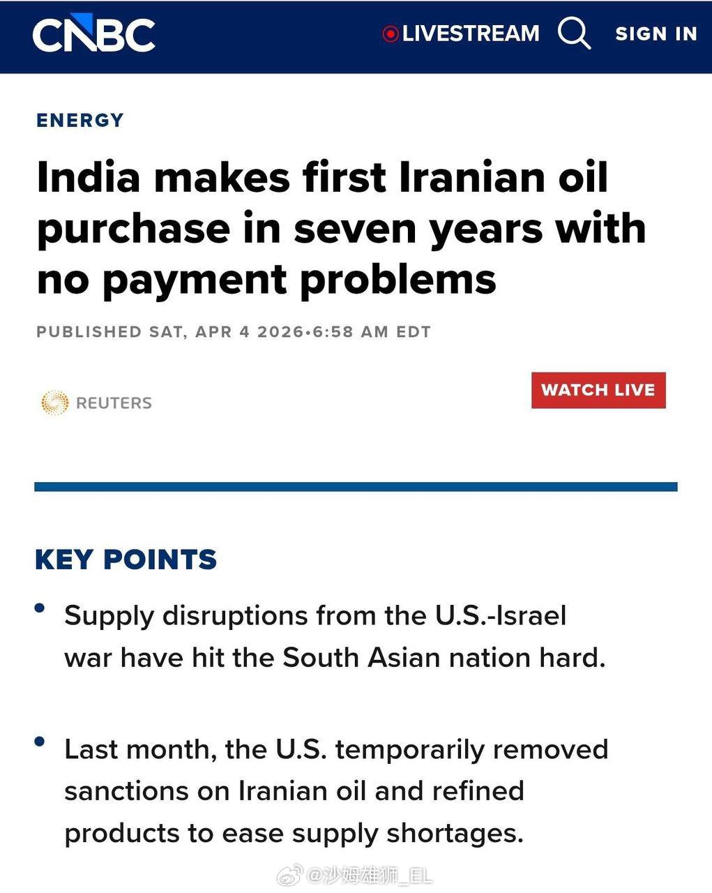 【#美方给予印度购买俄油30天豁免期#,“像给枪伤贴创可贴”】中东冲突引发全球能