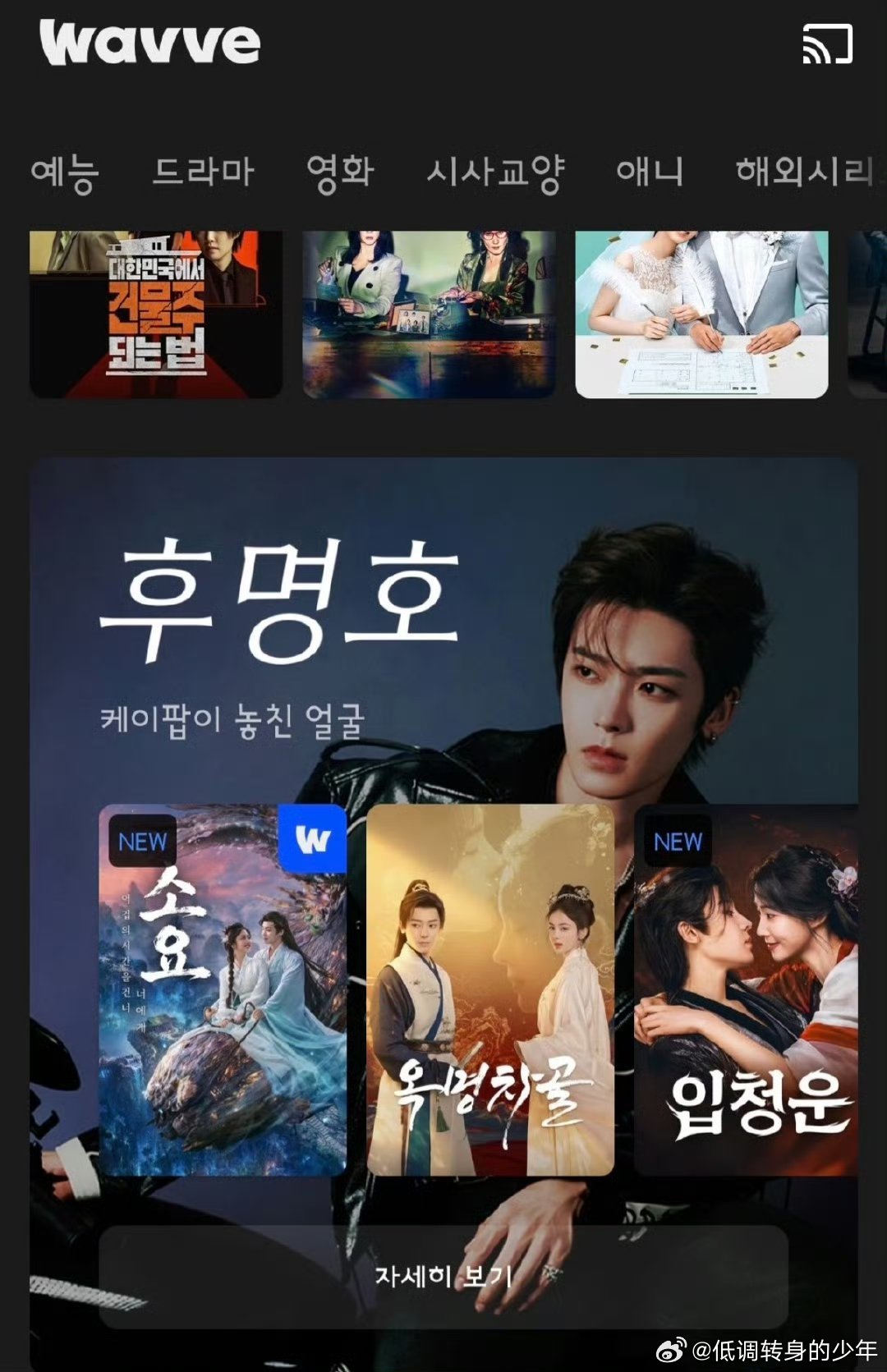 侯明昊碧血蝉韩wavve平台上侯明昊直接上了演员个人类别页,且只有侯明昊才有建模脸帅哥在哪里都受欢迎侯明昊碧血蝉