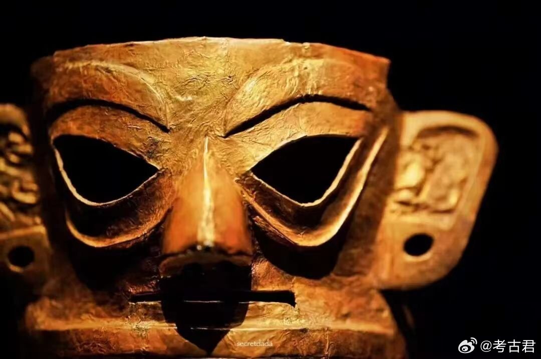 考古新知黄金面具 这件出土于成都金沙遗址的黄金面具,是商周时期古蜀文明的经典文物。它高10.7厘米、宽20.5厘米,重46克,是目前中国保存最完整的商周金面具。脸型方正、神情肃穆,表面精细抛光,内壁却略显粗糙——专家推测,它并非直接佩戴,而是贴附于其他器物之上。巧合的是,40公里外的三星堆也出土过同款金面,眉眼如出一辙,见证着两大遗址的紧密关联。三千年前,它泛着太阳般的光芒,在盛大祭祀中作为沟通人神的神器,承载着古蜀先民的虔诚祈愿。
