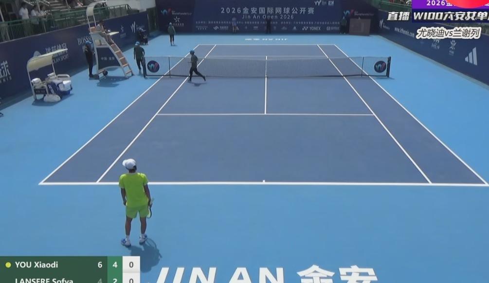 2026跟着网球🎾环游世界 W100金安区网球公开赛决赛正在进行中! 半决赛收王曦雨退赛大礼的尤晓迪6/4兰谢列拿下决赛第一盘! 兰谢列昨天2/1逆转取胜中国🇨🇳球员任雨菲打进决赛! 第二盘尤晓迪4/1.40/30领先被兰谢列坚强保发追到2/4了,期待尤晓迪拿到本站冠军吧!