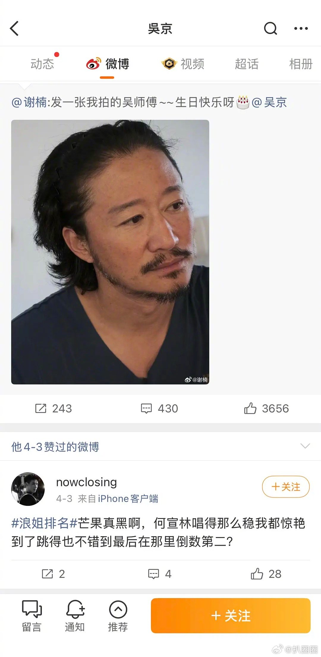 吴京点赞吐槽浪姐博文 哈哈哈哈哈哈哈哈~