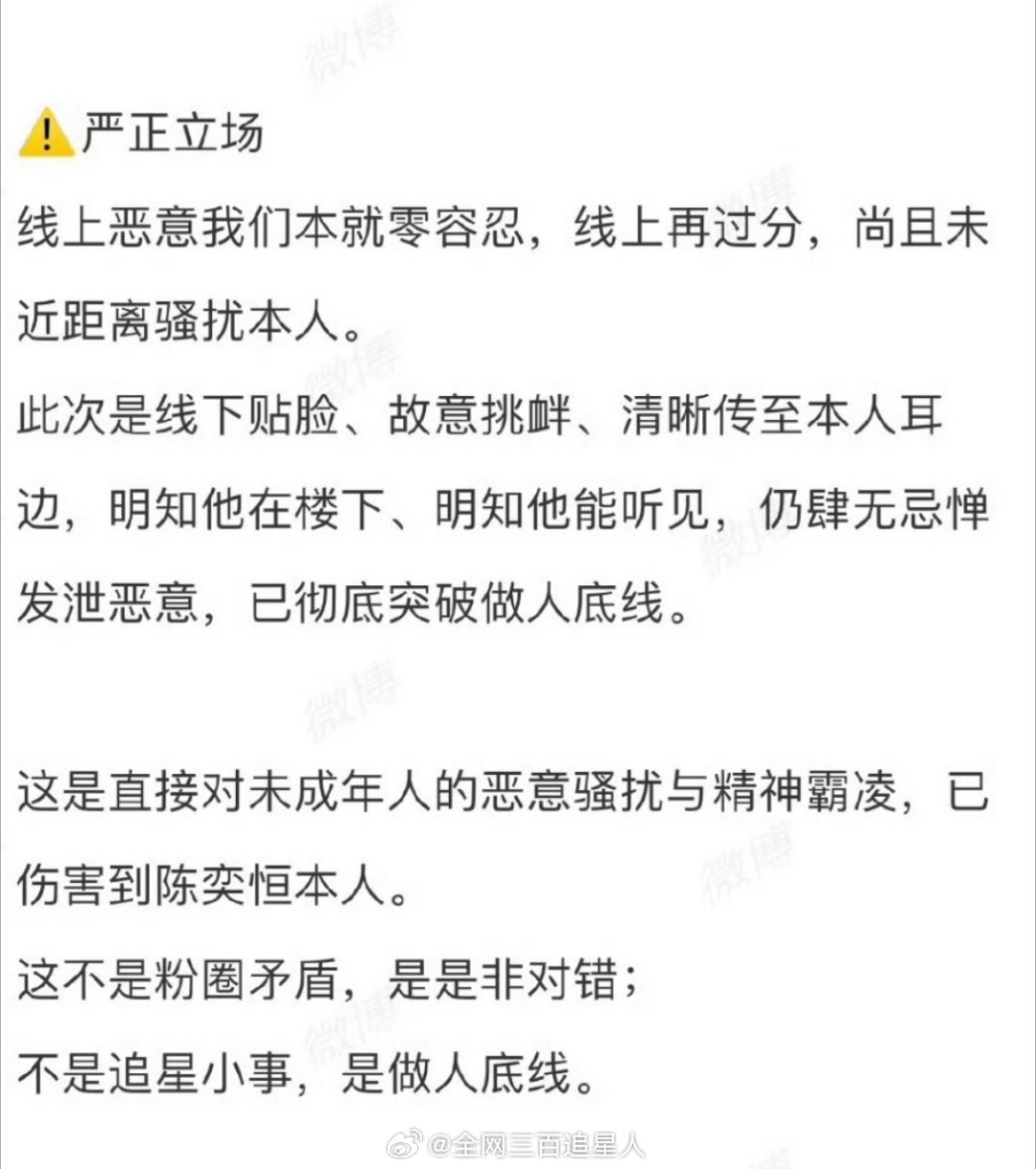 服了怎么会有人跑到线下去anti陈奕恒本人啊“不是追星小事,是做人底线”