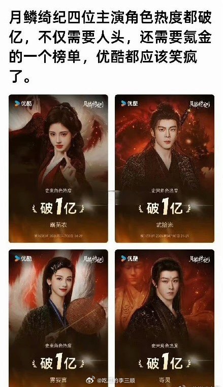《月鳞绮纪》角色热度均破亿鞠婧祎、曾舜晞、陈都灵、田嘉瑞