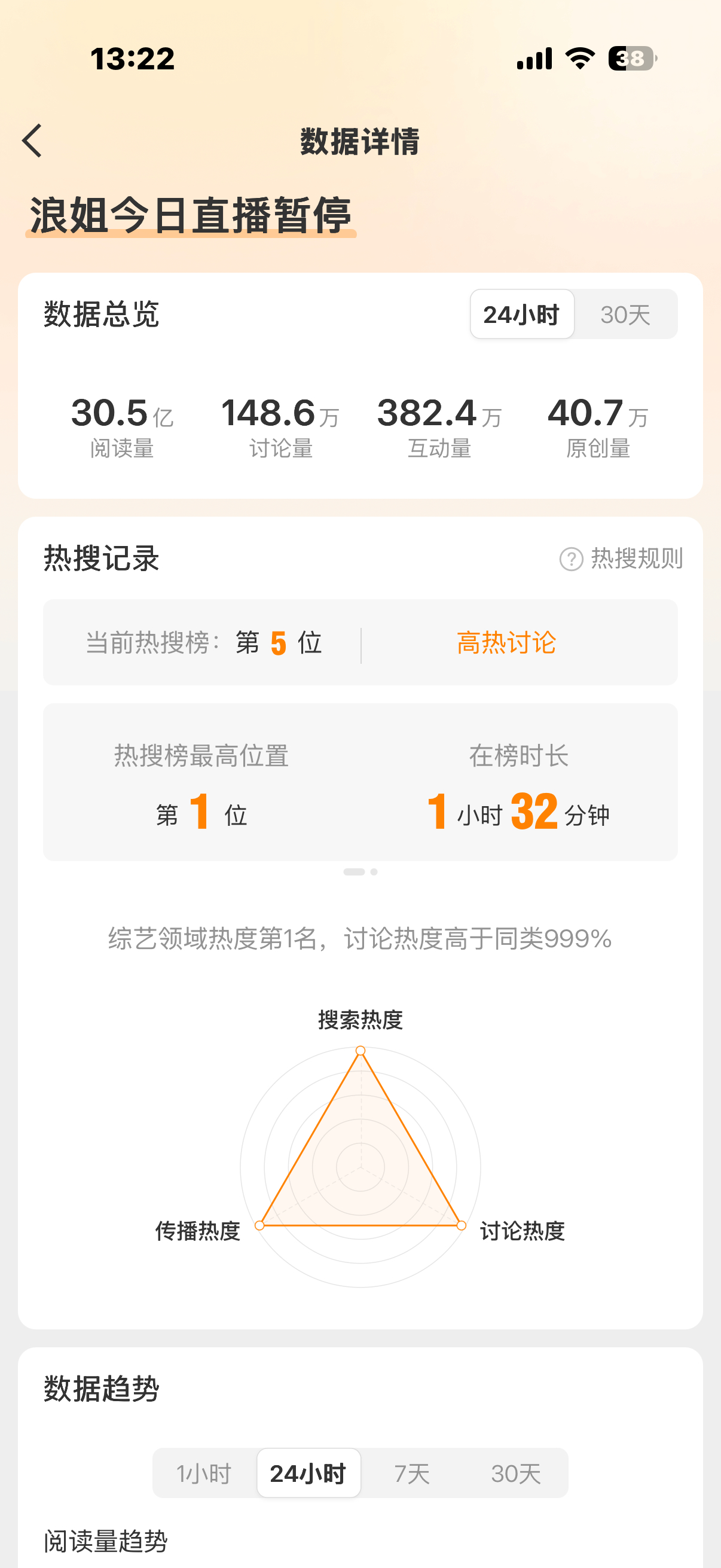 我的妈呀,浪姐是核爆了吧?点进浪姐今日直播暂停的热搜好吓人的阅读量……30.