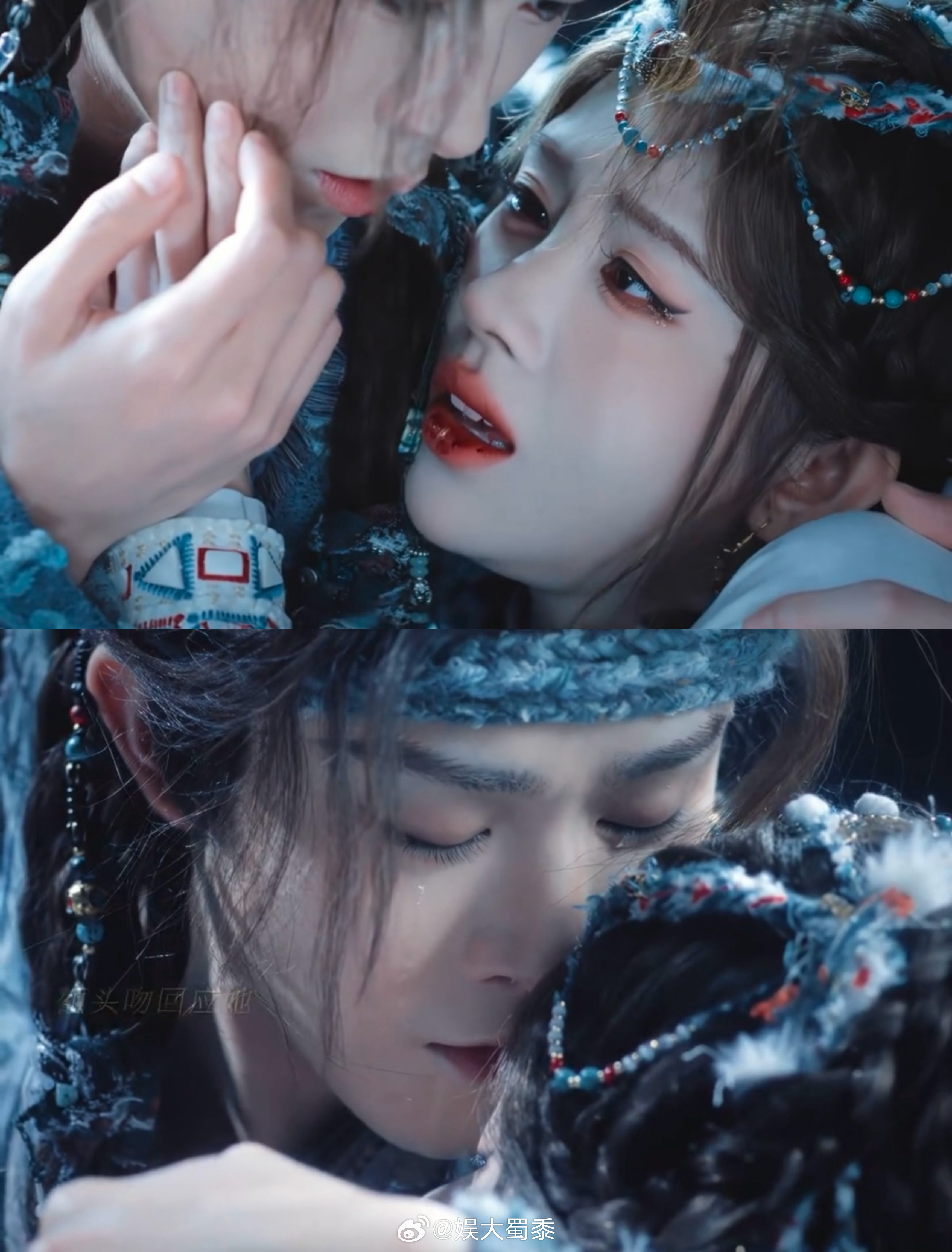 月鳞绮纪这段,神女陨落具象化了!拍的好唯美又破碎感拉满了😢最后再看一眼最爱的人,呜呜怎么这么虐啊!鞠婧祎田嘉瑞吻戏