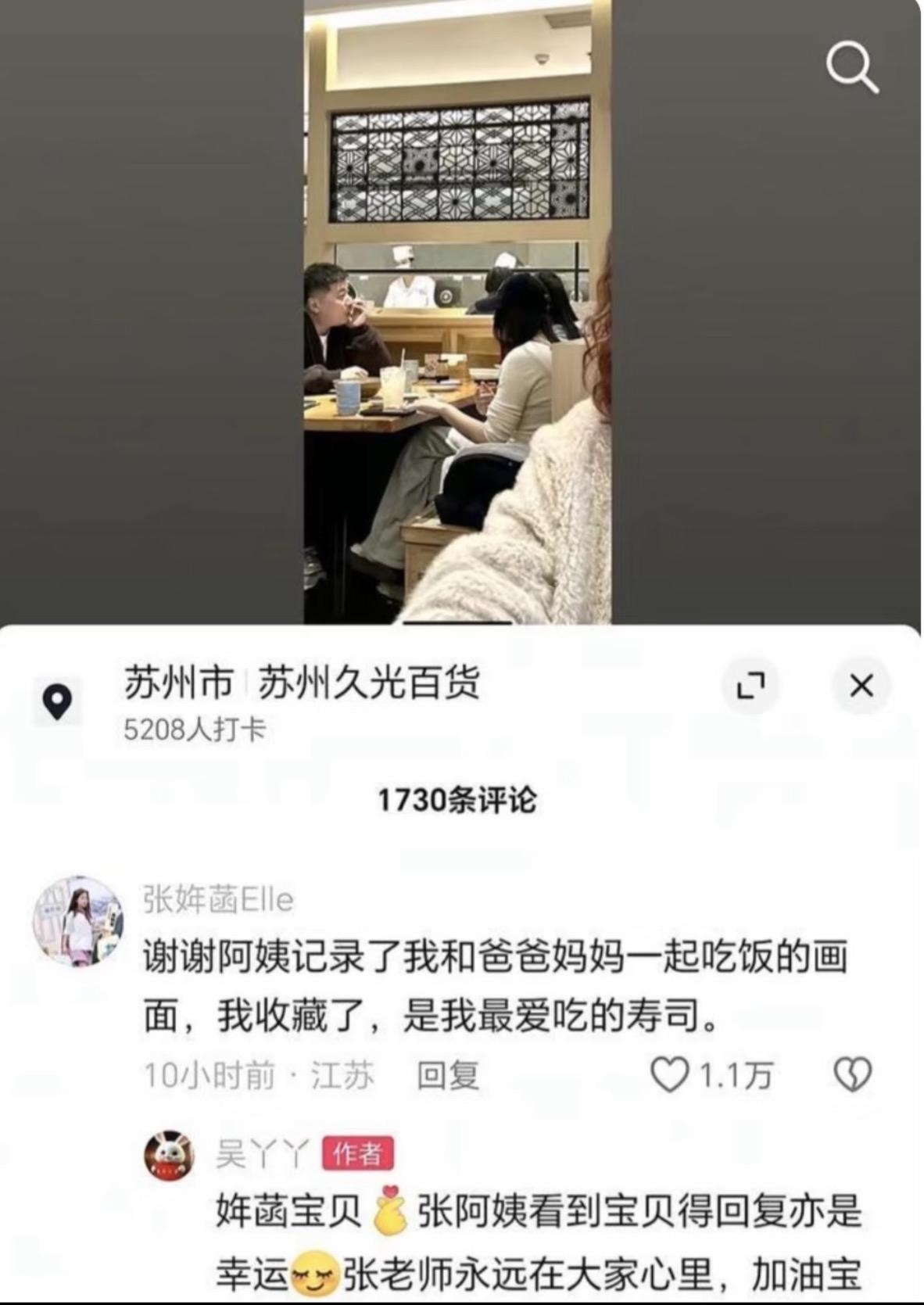 张雪峰女儿,最近干了一件让所有人都鼻头发酸的事。她开始在网上,默默收集所有“偷拍”她和爸爸的照片。 这事最开始是4月初一个网友发的动态,照片是2月份路人随手拍的,张雪峰带着老婆孩子在寿司店吃饭,没打光没摆拍,就是普普通通一家人吃饭的日常画面。 11岁的张姩菡刷到这条内容后,第一时间在评论区留了言,先跟拍照片的网友说了谢谢,说自己收藏了这张照片,还轻轻提了一句,那天吃的是她最喜欢的寿司,就这条留言,没几天就有2.3万点赞。 也是这时候大家才反应过来,这个小姑娘不是偶然刷到这条内容,是一直在全网找这些路人随手拍的、她和爸爸同框的画面,那些我们觉得不起眼的随手拍,在她眼里全是格外珍贵的宝贝。 我之前刷到过一个女生,她爸爸意外离世后,花了三年时间翻遍全网,找所有路人镜头里无意间拍到爸爸的画面,哪怕只是街景里一秒钟的出租车背影,她都小心翼翼存进了专属相册。 了解张雪峰的人都知道,他这辈子最宝贝的就是这个女儿,当初为了给女儿取名字,他翻了整整半年的字典,最后定下“姩菡”两个字,藏的全是对女儿一生平安顺遂的期许。 他之前直播的时候,哪怕正在正经跟大家讲高考志愿、分析专业前景,只要是女儿的电话打进来,他肯定第一时间接起,语气里的宠溺根本藏不住,而且他一直特别护着女儿的隐私,从来不让团队拍孩子的日常。 这事传开之后,全国各地的网友都开始翻自己的手机,把之前偶遇张雪峰时随手拍的照片都发了出来,有他蹲下来给女儿系鞋带的画面,有他在后台等女儿练琴的瞬间,相关话题短短三天阅读量就破了2.8亿。 他生前拼尽全力想给女儿留一片不被打扰的空间,却从来没想过,这些路人无意间按下的快门,会在他离开后,变成留给女儿最珍贵的礼物。 说白了,这就是父女之间拆不散的牵挂,爸爸生前爱得够深,孩子才会这么在意每一点和他有关的细碎回忆,真的太戳人了。