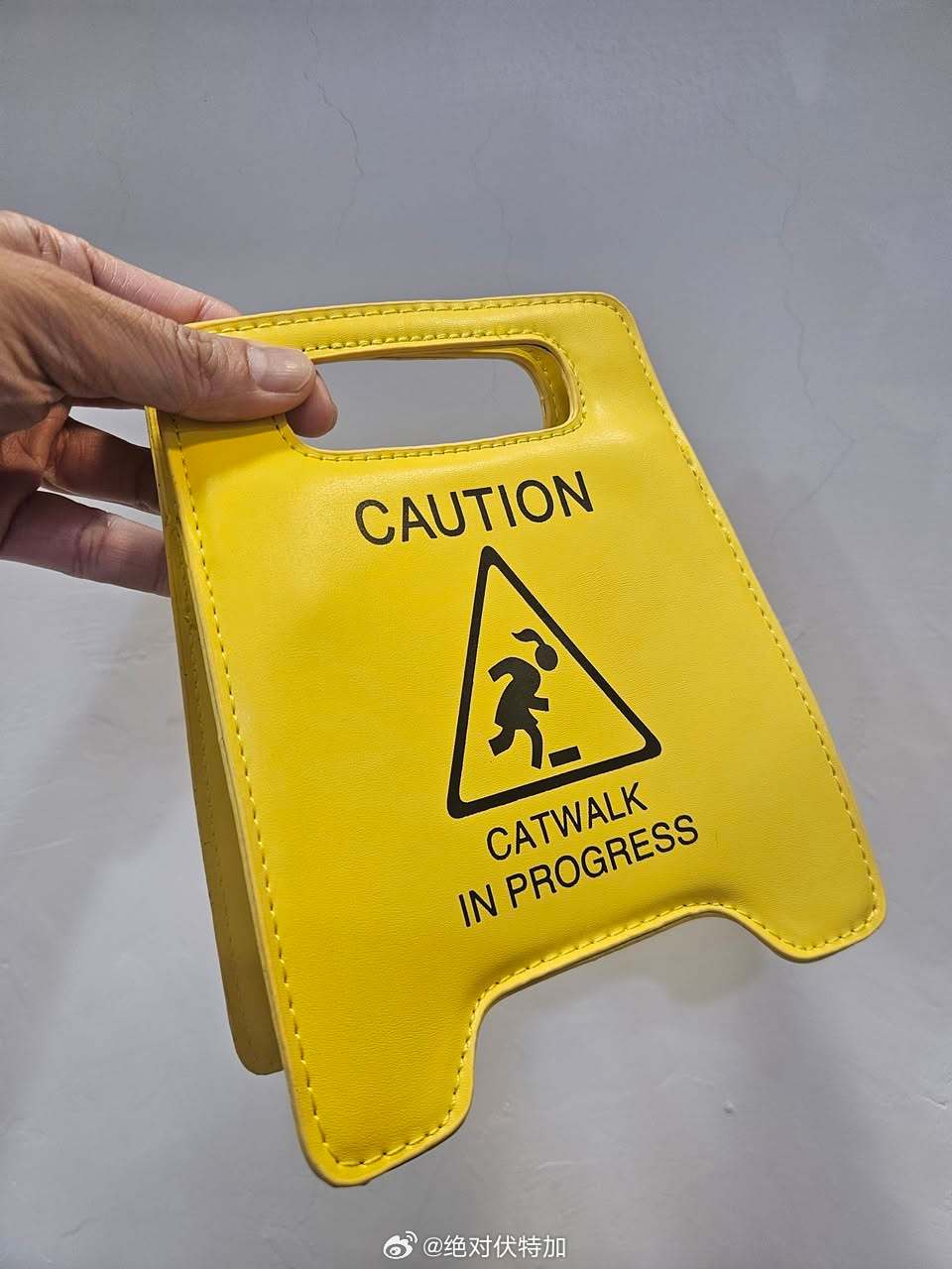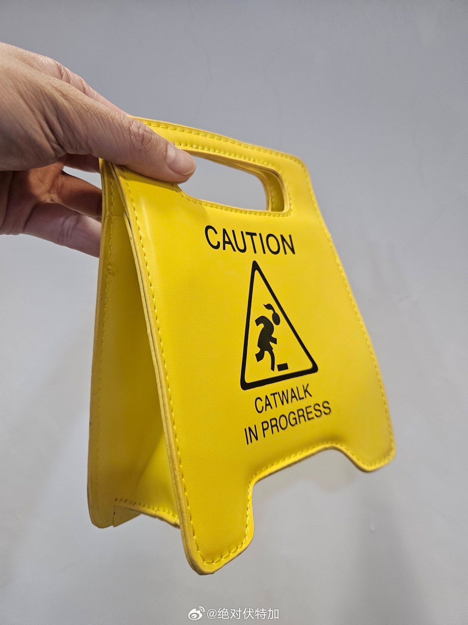 这个警示牌手袋设计有趣,弄个大号的男款出来吧。时装设计包包创意