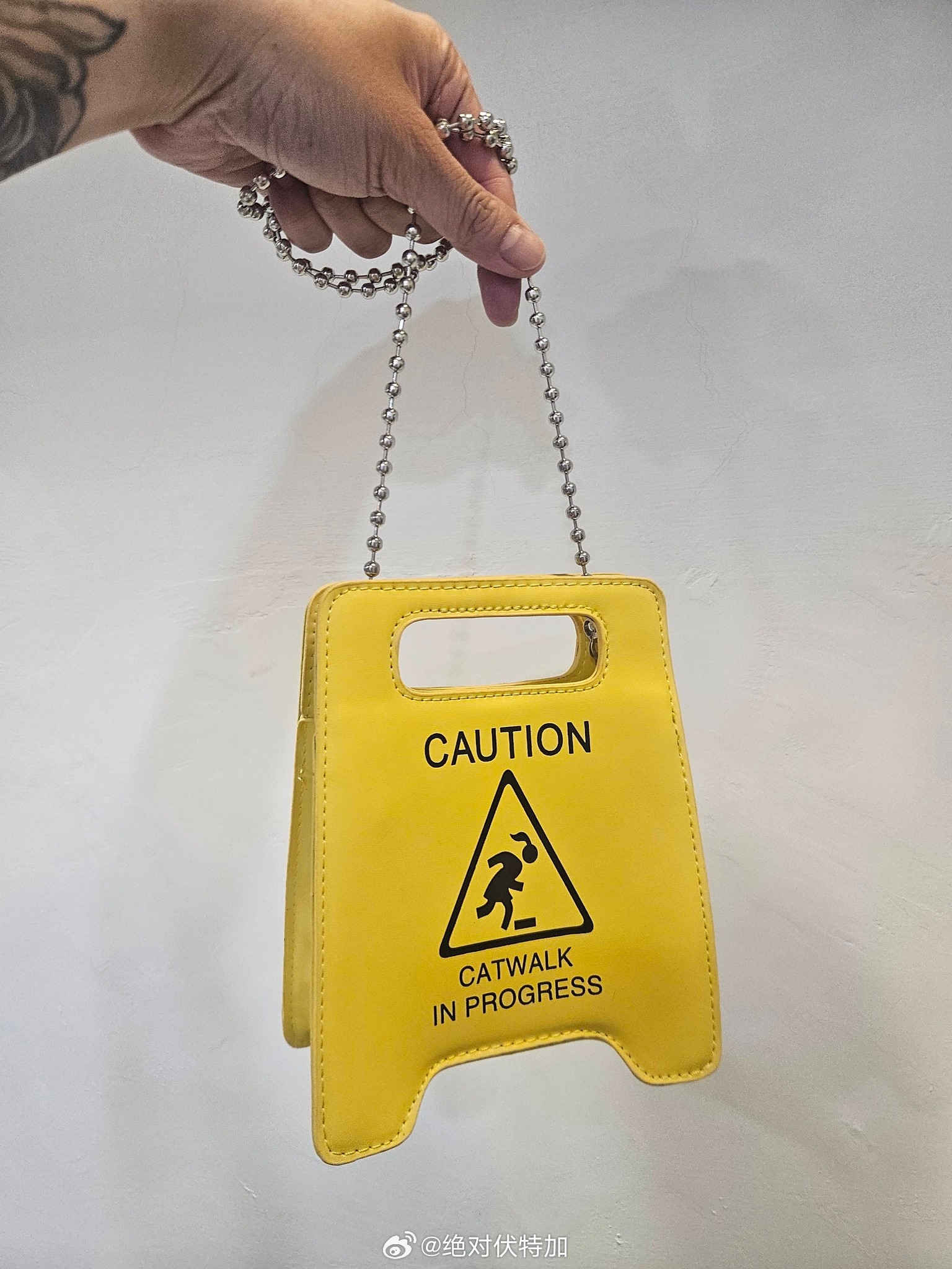 这个警示牌手袋设计有趣,弄个大号的男款出来吧。